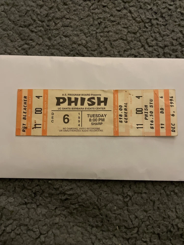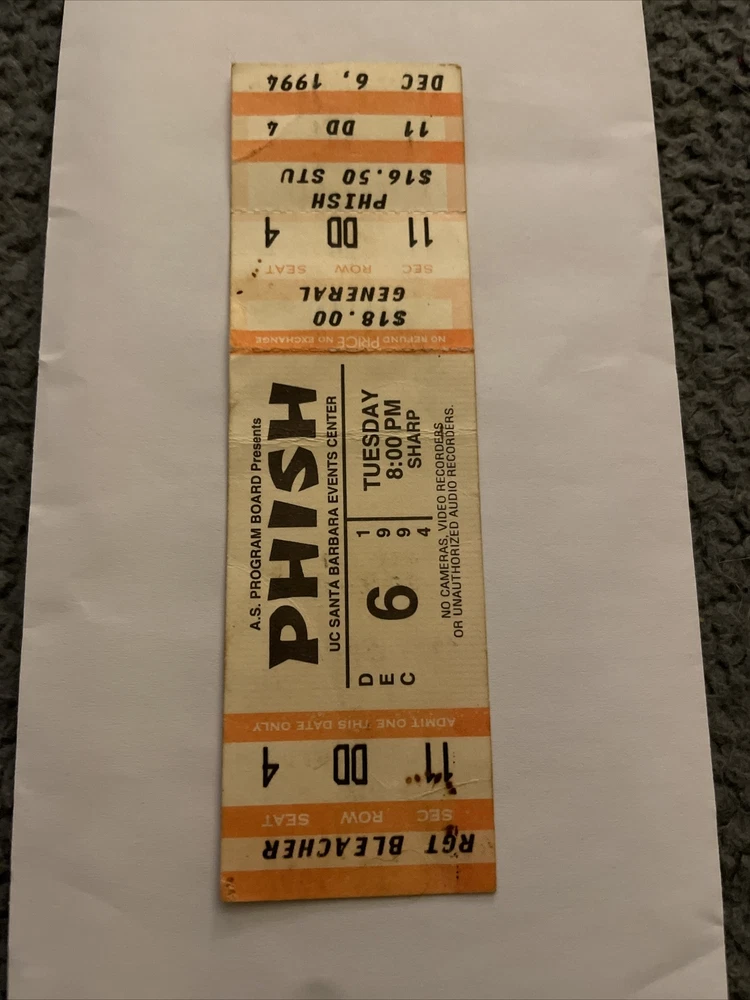 This is a ticket stub from the legendary Phish concert held on December 6th, 1994. It was an unforgettable night for music lovers and fans of the band, with amazing performances that captivated the audience. This piece of memorabilia is perfect for collectors and fans alike, as it represents a special moment in the history of the band. The ticket stub features the date and venue of the concert, as well as the Phish logo and other details that make it a unique and valuable item. Whether you are a die-hard fan or simply appreciate great music, this ticket stub is a must-have for your collection. Add it to your memorabilia today and relive the magic of one of the greatest Phish concerts of all time. Record label Concert 1996