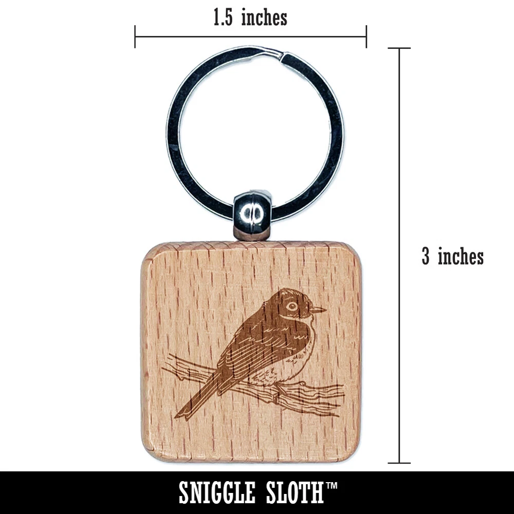 Phoebe Bird on a Branch Engraved Wood Square Keychain Tag Charm