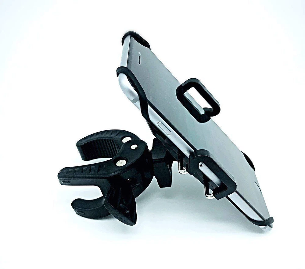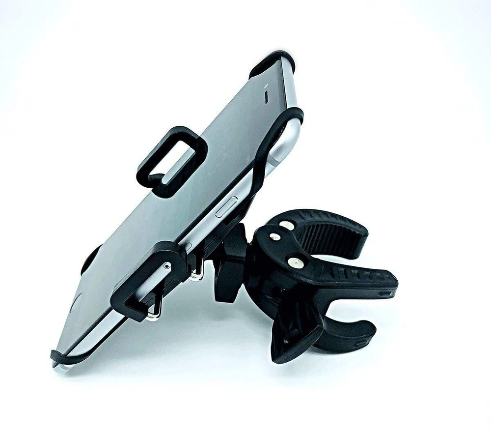 The Universal Phone Holder with Mount attaches securely to any Golf Cart, Bike, Boat, Car or Stroller. Designed to securely grip your phone with using a premium hard plastic grip with a silicone net, securing each corner of your devise tightly to the mount. Fully adjustable with 360 degree rotation for viewing your device at optimal angle. Secure adjustable mounting clamp attaches to most phones including: iPhone 6, 6+, 7, 7+, 8, 8+, X, XS, XS Max, XR, 11, 11 Pro, 11 Pro Max, 12, 12 Pro, 12 Pro Max - Galaxy S4, S5, S6, S7, S8, S9, S10, S20. Galaxy Note 4, 5, 6, 7, 8, 9, 10, 20.