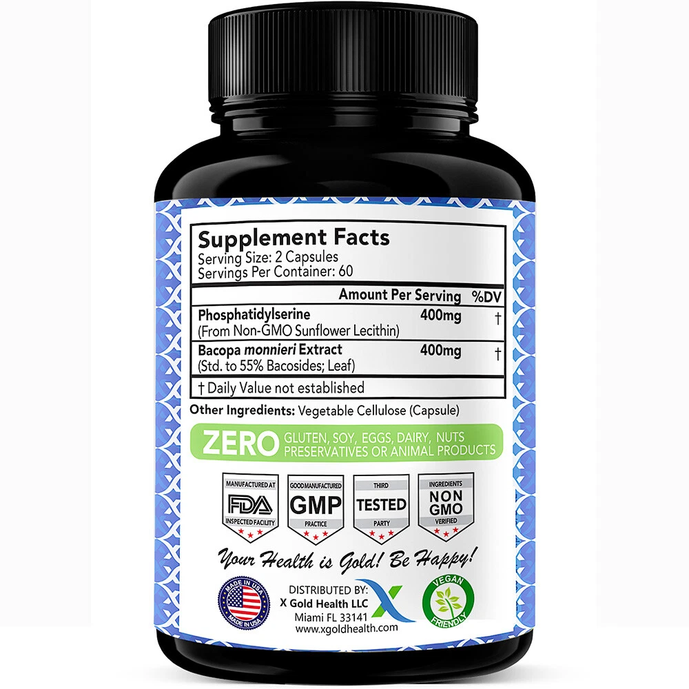 ✅ UNLOCK YOUR MIND: Stay focused and alert, enhance your memory and mental acuity, and combat mental fatigue with our cognitive support nootropic so you can get in the zone to operate at peak performance without worrying about a crash.* ✅ KEEP YOUR BRAIN SHARP: Our brains tend to lose processing power as we get older, which can result in slower thinking, difficulty recalling memories, and overall cognitive decline; the extra-strength nootropic fights against cognitive decline by giving your brain the fuel it needs.* ✅ 2-IN-1 POWERHOUSE FORMULA: Unlike competitors who offer each ingredient alone, each serving is packed with 400mg of Phosphatidylserine (PS) from non-GMO sunflower lecithin and 400mg of Bacopa Monnieri that join forces to help your brain work at full throttle.* ✅ ONLY THE FINEST QUALITY: Our supplements are formulated using only premium ingredients for maximum effectiveness and safety; this advanced nootropic complex is vegan and is free of gluten, soy, eggs, dairy, nuts, or preservatives to maintain purity and be inclusive. ✅ MONEY BACK GUARANTEE: We know you'll love our product and experience the overwhelming benefits, but if you aren't 100% satisfied for whatever reason, let us know and we'll give you a full refund with no questions asked!