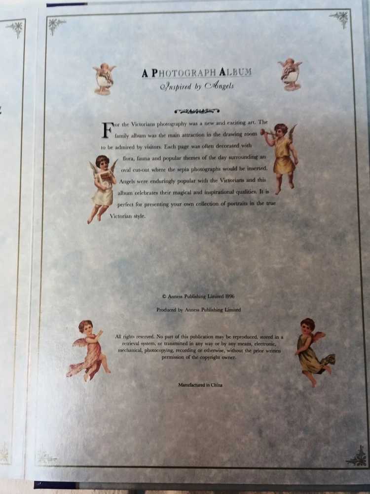 Photo Album Angels Victorian Pictures Hardback Frame 11 Page Book