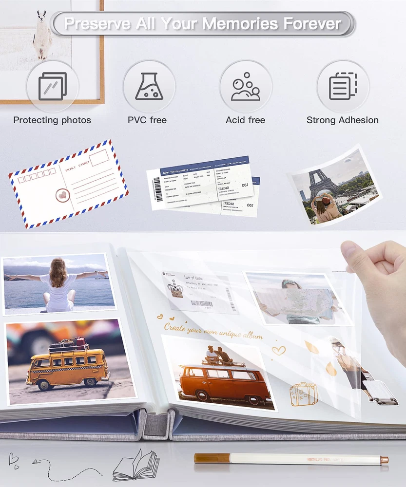 📚Preserve and Showcase Memories: Our Photo album is perfect for preserving and showcasing your most cherished memories. Whether it's a wedding,baby growth, family vacation, or milestone event, our album makes it easy to create a beautiful record of your special moments. 📖High-Quality Materials: Our scrapbook album is made with high-quality acid-free paper that ensures your photos and keepsakes stay in pristine condition. The sturdy pages are designed to hold up to daily use, making it a great keepsake to pass down through generations. 📷Easy to Use: Our self adhesive pages make it easy to add your photos and keepsakes without the need for messy glue or tools. The pages are designed to hold your items securely in place, so you can create a beautiful album without any fuss. 📝Customizable: Our album's blank pages give you complete creative control to add captions, drawings, stickers, and more. You can create a personalized album that showcases your unique personality and style. 🎁Great Gift Idea: Our album de fotos makes for a perfect gift for anyone who loves to capture and cherish memories. Gifts for birthday,christmas festivals,mother's day, father's day or other special occasion, our album is a thoughtful and unique way to show your appreciation and love.