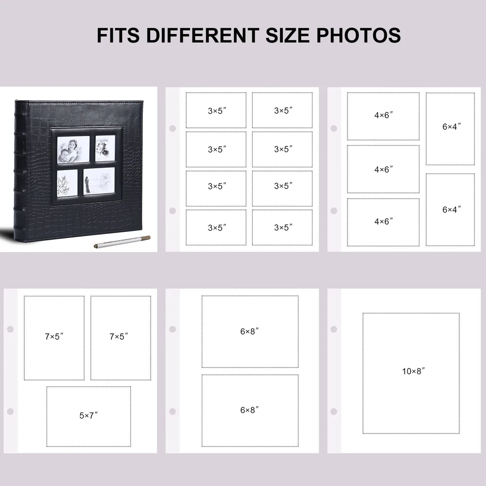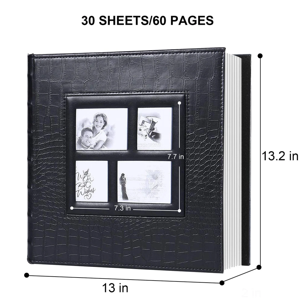 The most valuable thing for everyone is to share your memories together with family and friends, To record every detail of your pictures and tell your thoughts and feelings with sweet words. This will make you closer. Love needs to be expressed. DIY! The scrapbook album will be the best personalized gift. DIMENSIONS: Size: Length 13 x Width 13.2 (inches) Internal Self-Adhesive Page: Length 12.8 x Width 10.8 (inches) Page:60 pages (30 sheets) PACKAGE INCLUDE: 1 x Photo Album Your satisfaction is guaranteed! Size: length 13 x width 13.2 x thickness 2 (inches), internal self-adhesive page length 12.8 x width 10.8 (inches), 30 sheets/60 pages, can hold 300 4x6 or 180 5x7 or 60 8x10 or 60 10x12 photos. Self Adhesive Page: the pages are acid and PVC free, can be good protection of photos and text, will not fade. There are two screws in the last page of the album, and if necessary, the page can de deleted Cover Window: an openable pocket (7.7 x 7.3 inches) on the cover of book, freely switch 4 favorite photos according to your choice Premium Quality: Artificial PU leather cover with a deluxe raised rounded book style spine, which is durable and sturdy to last for years, your pictures and memories will be preserved in our special photo album organiser It also can be a DIY scrapbook album, it can hold many size photos, tickets and certificates including 3"X5", 4"X6", 5"X7", 6"X8", 8"X10" and 10"x12", you can fully let your imagination go wild, KEEP THE BEST MEMORY! It will be a perfect photo album for recording your wonderful moments.