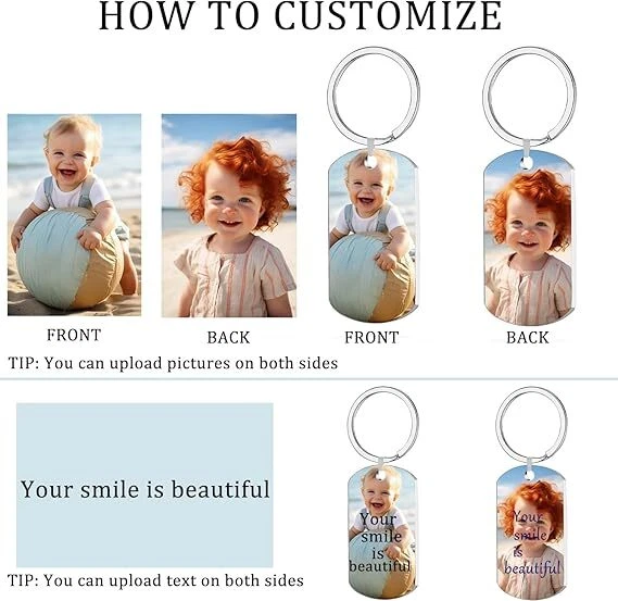 Product Description Customized personalized keychain with carved photos/text, suitable for parents Product information You can purchase the style you like and send me the high-definition pictures and customized text you want. We have a variety of styles for you to choose from, allowing you to unleash your imagination and create unique keychains for yourself or your loved ones. The customized keychain is made of stainless steel and engraved with advanced laser technology to ensure that your images and text are clear and easy to read, and can be used for a long time without wear or detachment. Our personalized picture keychain is perfect for expressing eternal love to special people, whether it's a dad, mom, boyfriend, girlfriend, child, husband, or pet, it's a unique gift. Customized photo keychains are special and meaningful souvenirs. You can express your ideas on Christmas, Mother's Day, Father's Day, Valentine's Day, wedding anniversaries, birthdays, graduation ceremonies, keychains, etc. - For example, Christmas gifts for mom and dad We have always attached great importance to the shopping experience of our customers. If you have any questions about customization or shipping, please feel free to contact us and we will reply within 24 hours. Payment 1 . We accept Paypal . 2 . We only ship to your Paypal's address, please ensure your shipping address on your paypal account is correct. If you have any change for address, please inform us in ebay note. 3 . Payment must be fulfilled within 7 days after purchase. All non-paying orders will receive an unpaid reminder from eBay. Shipping Once we have received cleared full payment, your items will be dispatched in 1-3 days. It normally takes : 7-14 business days for US, UK, Canada, Australia, Asian countries. 14-21 business days for Spain, German, Middle East countries. 18-25 business days for Russia, Brazil, Italy, France, European countries. 24-32 business days for South American countries. We send items by air mail to the buyer without track number. There maybe some delay due to flight, holiday, weather, local post, local natural disaster impact. if your shipment delays, we hope you can be patient, and at the same time contact us, we will try our best to help you. Import duties, taxes and charges are not included in the item price or shipping charges. These charges are the buyer's responsibility. Please check with your country's customs office to determine what these additional costs will be prior to bidding / buying. Return If any item is defective upon receipt or do not work, please contact us for the return address, return is accepted within 30 days after the buyer receiving the item. Returned item has to be in its original condition. Buyer is responsible for return shipping costs . After receiving the return we will make a replacement depends on our available stock, if not available, a refund will be issued. Contact us All products have been checked and packaged in good condition before dispatch. In case the item is defective, please inform us within 30 days after the package successfully delivered , we will do our best to help. If you have any enquiries, please contact us through eBay Message and clearly tell us what happened or what you need (No dispute, No Negative Feedback, No Neutral Feedback). If you have any enquiries or not satisfactory the item , please contact us priority before leaving any Neutral or Negative feedback or Open Dispute/Return Request. Communication is the fastest and most direct way to solve problems. Customer service hours: 8:30-18:00 Beijing time If you do not reply to you in time due to the time difference, please understand. We will reply to you as soon as possible within 8 hours. powered by