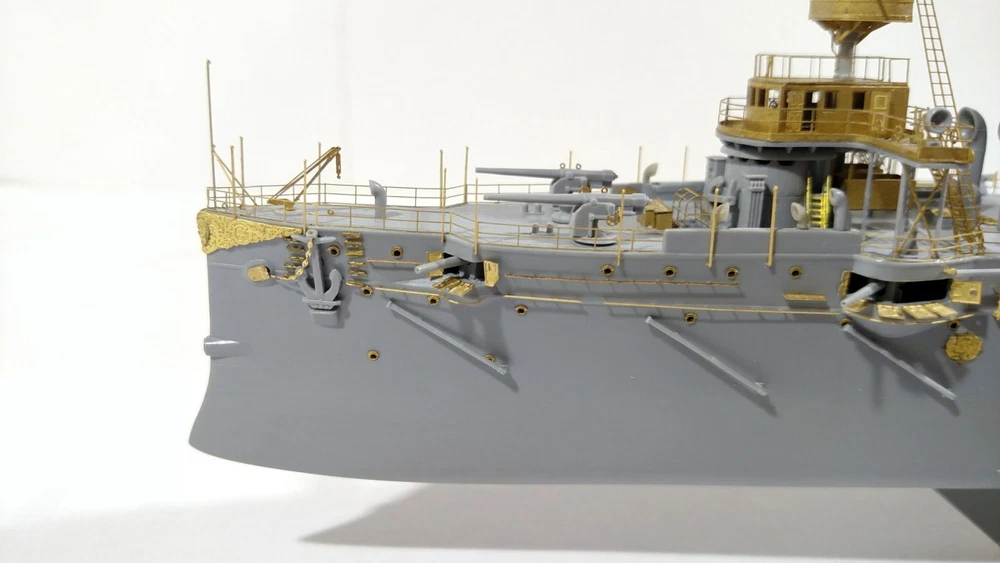 Enhance the realism of your model with high-quality photo-etching from Microdesign! Set Features Manufacturer: Microdesign Compatibility: RIF Cruiser "Varyag" by Zvezda (Art. 9014) Scale: 1:350 Material: Brass sheets, 0.17 and 0.12 mm thick Contents: 4 photo-etching plates Color instruction manual Number of unique parts: 213 pcs Advantages High detail: Add 213 unique parts to your model for maximum accuracy. Quality materials: Brass plates provide durability and ease of use. Easy to use: Step-by-step color instructions help you install all elements effortlessly. Please Note The assembly model is not included. The set provides only photo-etched parts to enhance the cruiser model. Item location: USA. Fast shipping: The item will be shipped immediately after payment. Historical Background of the Cruiser "Varyag" The first-rank cruiser "Varyag" was built in the USA at the William Cramp & Sons shipyard by order of the Russian Imperial Navy and was commissioned in 1901. It became a symbol of heroism due to its participation in the unequal battle at the Korean port of Chemulpo on February 9, 1904, at the beginning of the Russo-Japanese War. Together with the gunboat "Koreets," "Varyag" engaged in battle against superior Japanese naval forces. Despite severe damage and casualties, the crew decided to scuttle the ship to prevent it from falling into enemy hands. The feat of "Varyag" and its crew has forever entered history as an example of courage and self-sacrifice. Order Now! Don't miss the opportunity to turn your model of the cruiser "Varyag" into a true masterpiece. Order the photo-etching set from Microdesign today and give your model unparalleled realism!