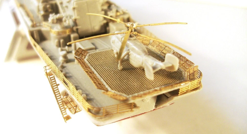 Enhance the accuracy and realism of your Russian Navy class Missile cruiser model "Moscow" with this photo-etched detailing set from Trumpeter. Expertly designed to add intricate details, this set promises a more authentic and professional finish. Elevate your modeling game with this set and impress fellow enthusiasts. MD700202 Photo etching kit for Russian Navy class Missile cruiser " Moscow " from Trumpeter ( 05720 , 05721 , 05722 ) . The scale is 1 : 700 . Material : brass 0.12 mm , nickel silver 0.12 mm . The set is equipped with 3 photo etching plates and a color photo instruction .