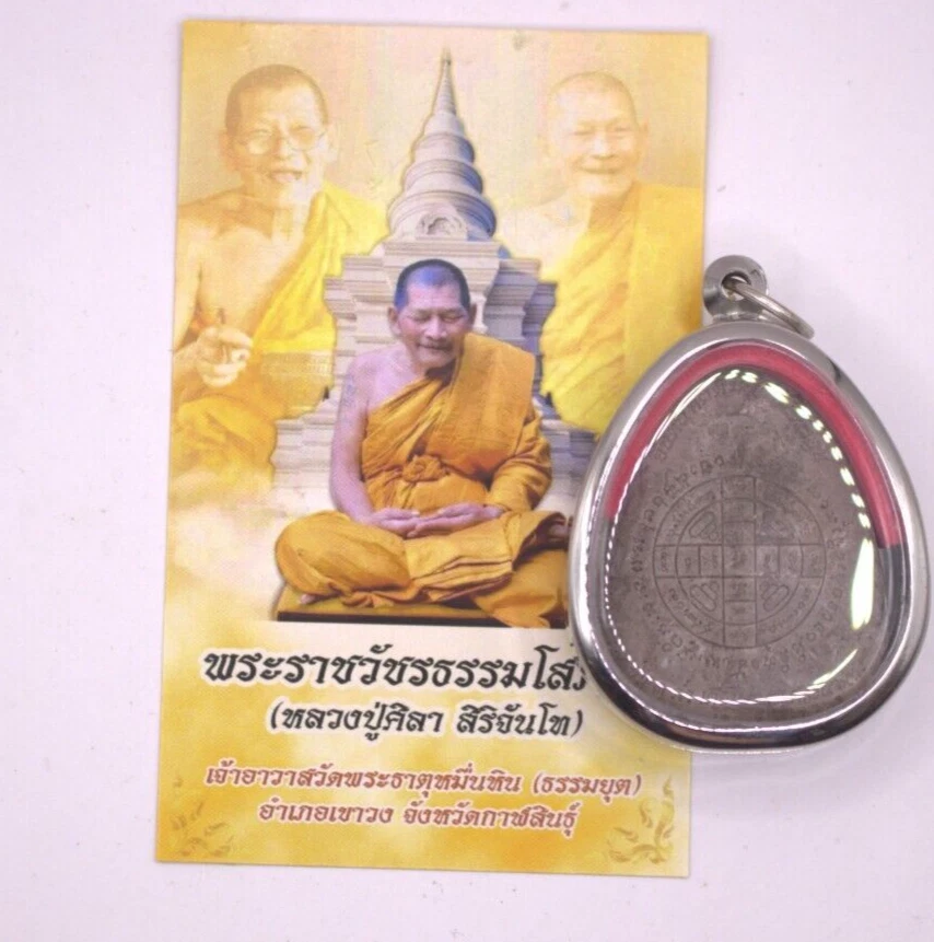 Embrace the spiritual essence of Southeast Asia with the Phra Pidta Talisman Pendant, a sacred amulet crafted by the revered Luangpu Maha Sila. This vintage original piece, steeped in tradition and spirituality, is a testament to the rich cultural tapestry of the region. Adorned in an elegant gold hue, the pendant is a blend of mixed materials, reflecting the intricate craftsmanship of its era. Dating back to post-1940, this talisman pendant is not just a piece of jewelry but a symbol of faith and protection. It is an authentic representation of the region's spiritual artistry, designed to carry the positive energies and blessings of Buddha. Whether you're a collector of vintage originals or seeking a meaningful spiritual symbol, this Phra Pidta pendant is a profound choice.