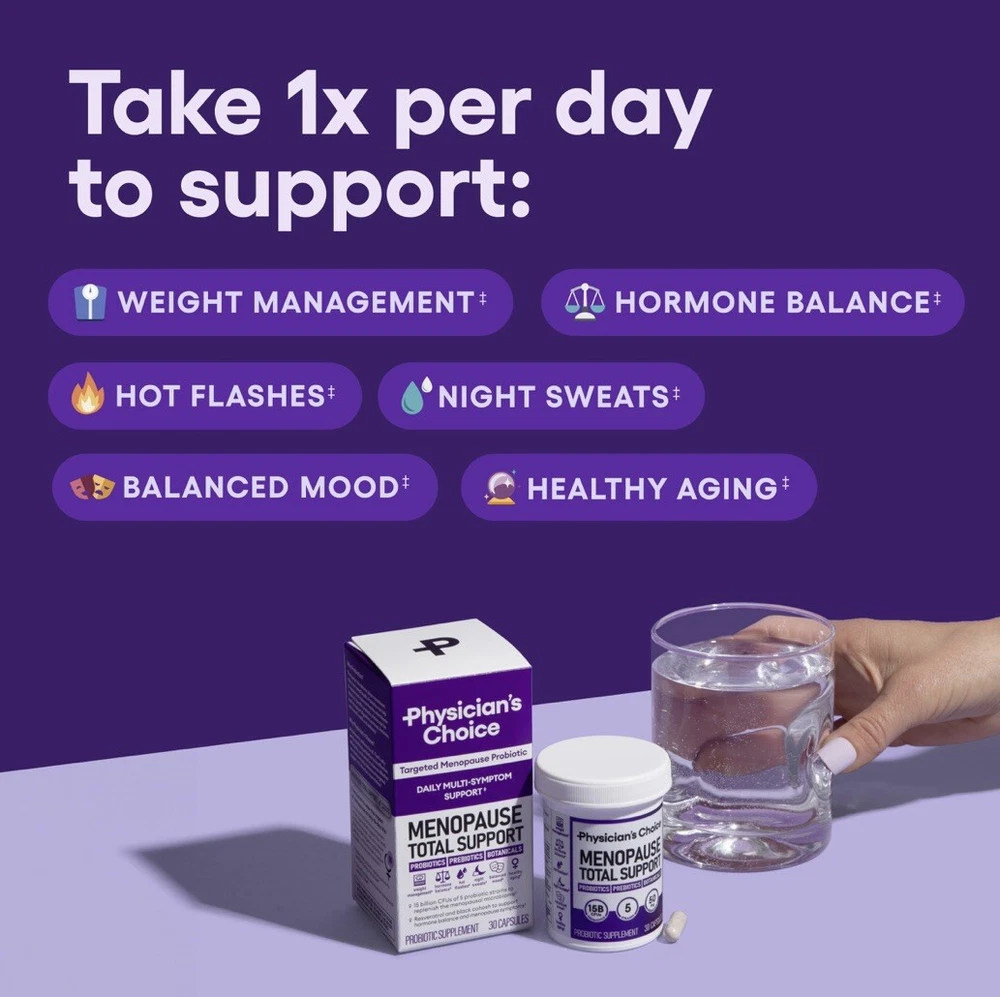 Physician's Choice Menopause Probiotic Supplement for Women, 50 mg (30caps). Tailored for Both Peri-Menopausal & Menopausal Women: Specifically designed for women navigating all stages of menopause - No matter where you are in your journey, this probiotic will provide you with the support you deserve. Holistic Menopause Support: Beyond a mere supplement, this probiotic becomes your daily companion ensuring menopausal support. This order will ship via USPS. Please check my store for Physician’s Choice product combos. Thank you for your interest!