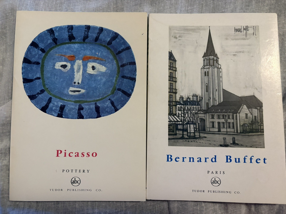 Van Gough Arles Saint Remy 1956 Cezanne Landscapes 1958 Picasso Papiers Colles 1960 Gris Still Life 1961 Bernard Buffet Paris 1961 Picasso Pottery 1962 Fernand Hazan Printed in France The product is a vintage book titled "Picasso" by Fernand Hazan, published in 1962 by Tudor Publishing. The book, written in English, focuses on the life and work of the artist Picasso, providing insights into his art and culture. The book is a valuable addition to any art enthusiast's collection, offering a deep dive into the art history and pottery techniques of the renowned French artist.