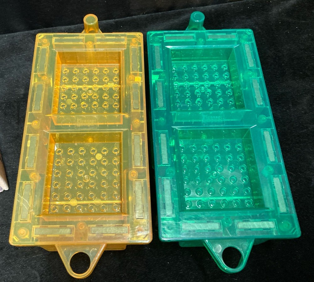 This 4-Piece Picasso Tiles Car Truck Set can be combined with our other magnet tile toys to construct captivating structures atop your vehicle base, creating and exploring while on the move. Let your child's imagination soar as they build and transport unique creations wherever the journey takes them. The item is pre-owned and comes in good, clean condition with no chips, cracks, or breaks. Please see pictures for details. If you have any questions or concerns, please do not hesitate to contact us. Check out our other items and message us if interested in more than one listing as combining items could save you money on shipping.