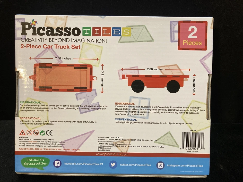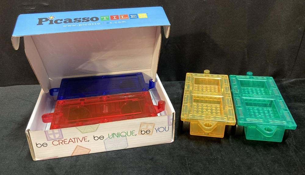 This Picasso Tiles car set is a fantastic way to spark creativity! The bright colors and strong magnets make building fun and easy, and it works great with other magnetic tiles. My little one loves designing cars and driving them around—endless entertainment! The set arrived in excellent pre-owned condition, just as described. Perfect for travel or playtime at home. Highly recommend for young builders!