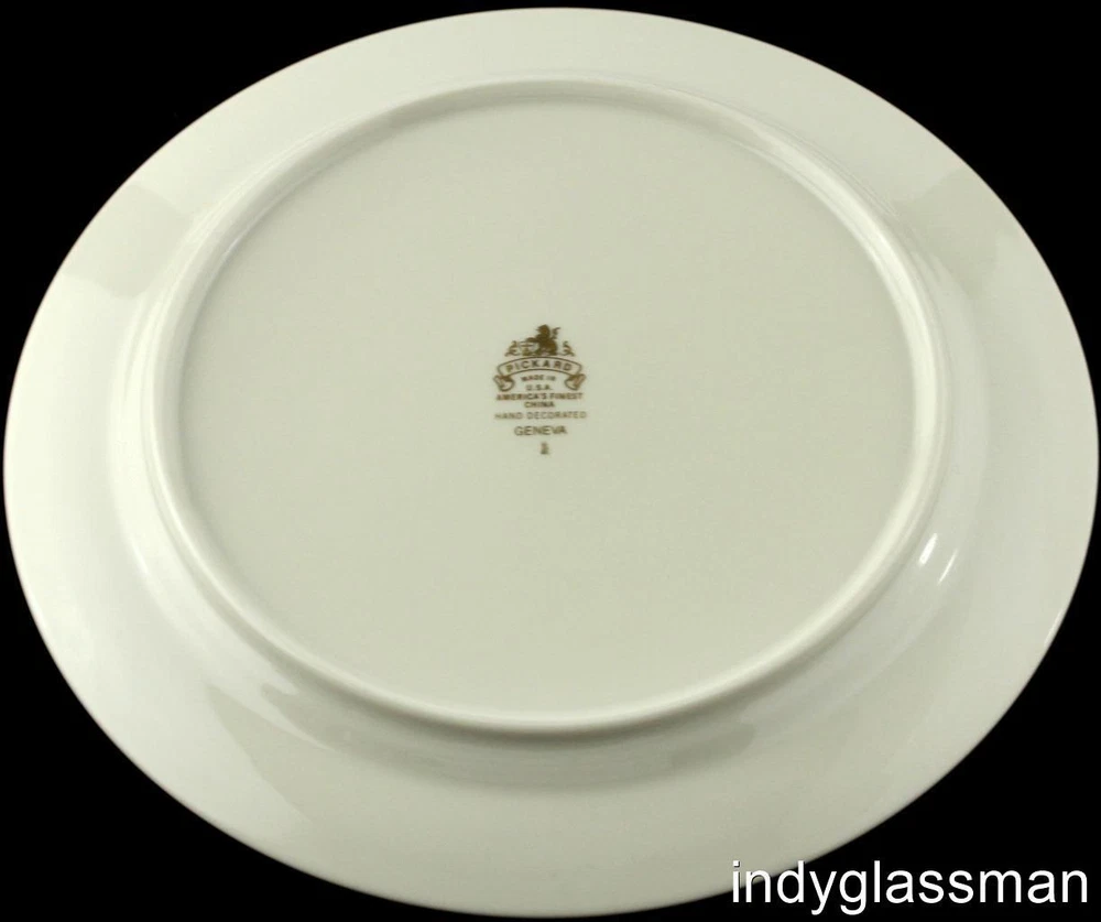 Every plate offered is in excellent damage-free condition with no apparent signs of use. They are very clean and shiny, top and bottom, without crazing, chips, cracks, scratches, dark utensil markings, or dishwasher film, and the Platinum trim looks excellent with no signs of wear. Every plate offered has been closely inspected so rest assured they are all in excellent damage-free condition and of the highest quality. Please see all of the super-sized photos below for the best visual description of these beautiful vintage plates. They each measure approx. 8 1/4" across. Pickard (USA) GENEVA IVORY PLATINUM Salad Plate UNUSED Pickard (USA) GENEVA IVORY PLATINUM Salad Plate UNUSED Click image to enlarge Description Things you should know about Place Settings Plus Welcome! There are all kinds of people selling on eBay. Our goal is to be the one you can trust and depend on for high quality items at the best possible prices. Each item is thoroughly cleaned and inspected before listing. Each item is in "gently used" to "near mint" condition unless stated otherwise. Each item is described in detail and any relevant imperfection disclosed. All photos shown are of the actual item you will receive. (No stock photos) Each item is double checked for quality and condition prior to shipment. Each item is professionally packaged for a safer journey to your door. We always combine multiple items to save you on shipping charges. We do not profit on shipping charges . You will only pay the actual shipping charge and $1.00 for S&H. Most orders ship within 1 business day after payment is received. That's it! Please review my latest feedback and buy with confidence! ITEM DESCRIPTION Place Settings Plus is pleased to offer (1) Pickard (USA), Porcelain, Salad Plate in the beautiful "Geneva Ivory" pattern with Platinum trim. Circa 1978-Present. Every plate offered is in excellent damage-free condition with no apparent signs of use. They are very clean and shiny, top and bottom, without crazing, chips, cracks, scratches, dark utensil markings, or dishwasher film, and the Platinum trim looks excellent with no signs of wear. Every plate offered has been closely inspected so rest assured they are all in excellent damage-free condition and of the highest quality. Please see all of the super-sized photos below for the best visual description of these beautiful vintage plates. They each measure approx. 8 1/4" across. They each weigh approx. 12 oz. Please check out my other listings and save with combined shipping. Due to a few dishonest people, all items will be shipped with security labels to prevent fraudulent returns. No returns will be accepted without the security label or if it has been tampered with. The label easily washes off with warm soapy water or alcohol. Get images that make Supersized seem small. Showcase your items with Auctiva's Listing Templates! THE simple solution for eBay sellers. Track Page Views With Auctiva's Counter