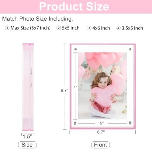 Frame Type: Wall and Tabletop Picture Frame Mounting Type: Wall Mount Product Dimensions: 8.7"L x 6.7"W Size: 5x7 UPC: 717012743213 Type: Does Not Apply Finish Types: high_gloss MPN: Does Not Apply Target Audience: Unisex Adult Back Material Type: Acrylic Unit Count: 1.0 Count Item Dimensions L x W: 8.7"L x 6.7"W Orientation: Horizontal and Vertical Number of Items: 1 Finish Type: high_gloss Style: Modern Occasion Type: Bridal Shower, Wedding, Anniversary, Valentine's Day Item Width: 1 Shape: Rectangular Frame Material: Acrylic Cover Material: Acrylic Color: Pink Theme: Holiday Item Height: 1 EAN: Does Not Apply Item Length: 1 Brand: Does Not Apply gtin13: Does Not Apply Item Shape: Rectangular