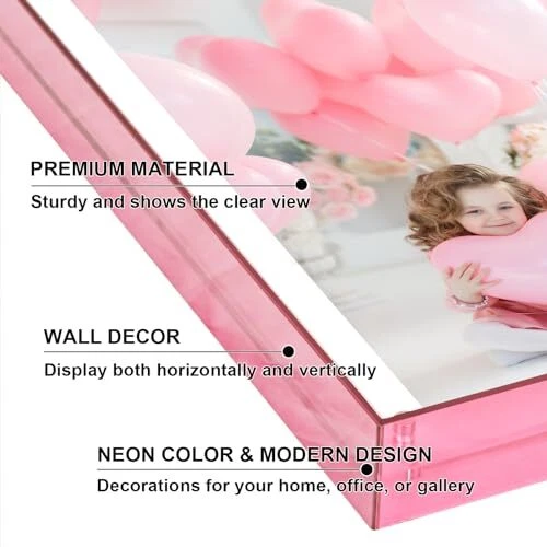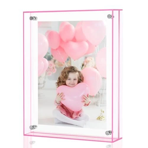 Picture Frames, Stunning Color Acrylic Photo Frame, Wall & Tabletop 5x7 Pink