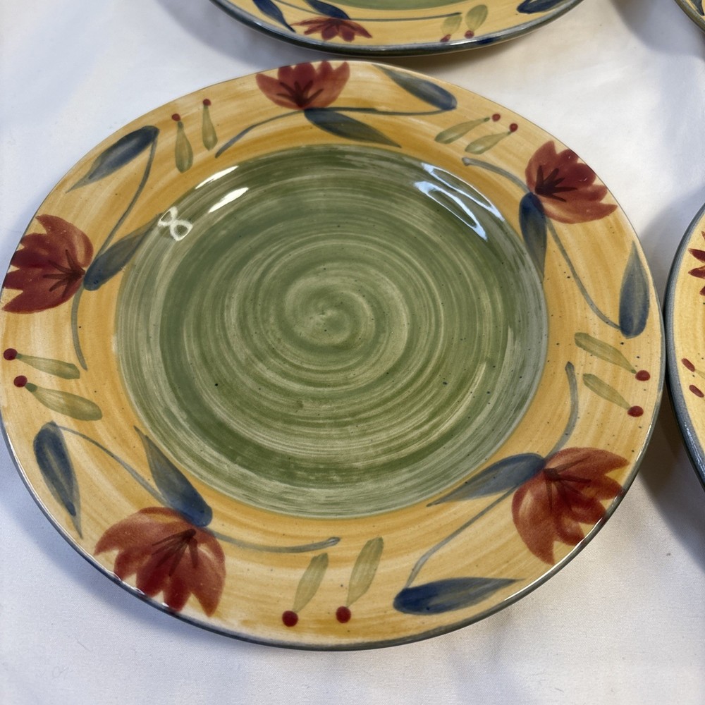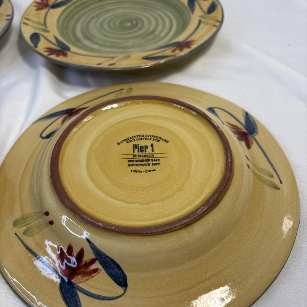 Pier 1 Elizabeth Hand Painted Stoneware 8" Salad Plates Set of 4 Floral. Condition is Used. Shipped with USPS Ground Advantage.