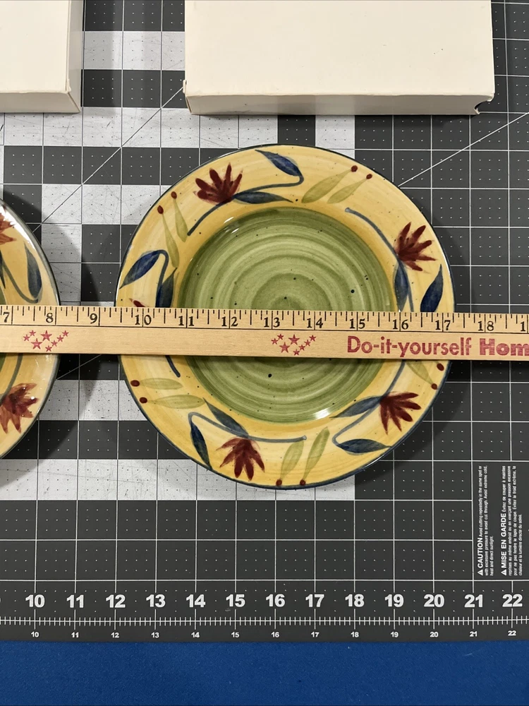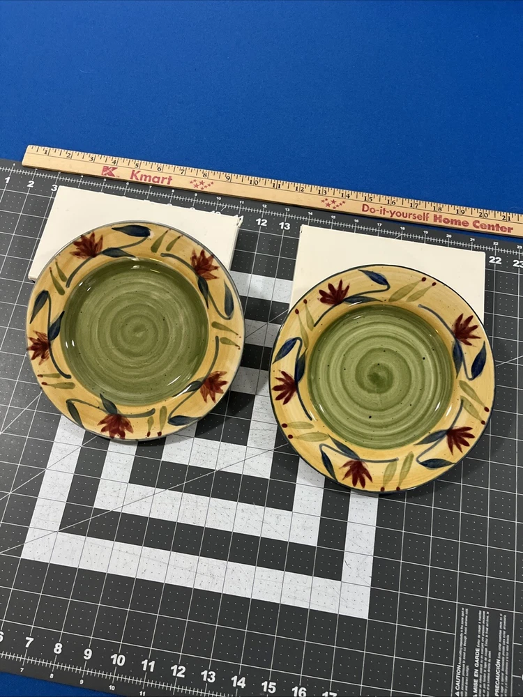 Pier 1 Elizabeth Stoneware (2) Salad Plates Hand Painted Rimmed Floral 8”