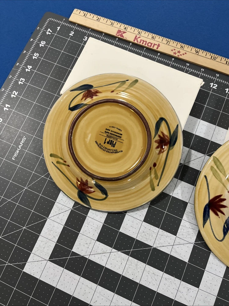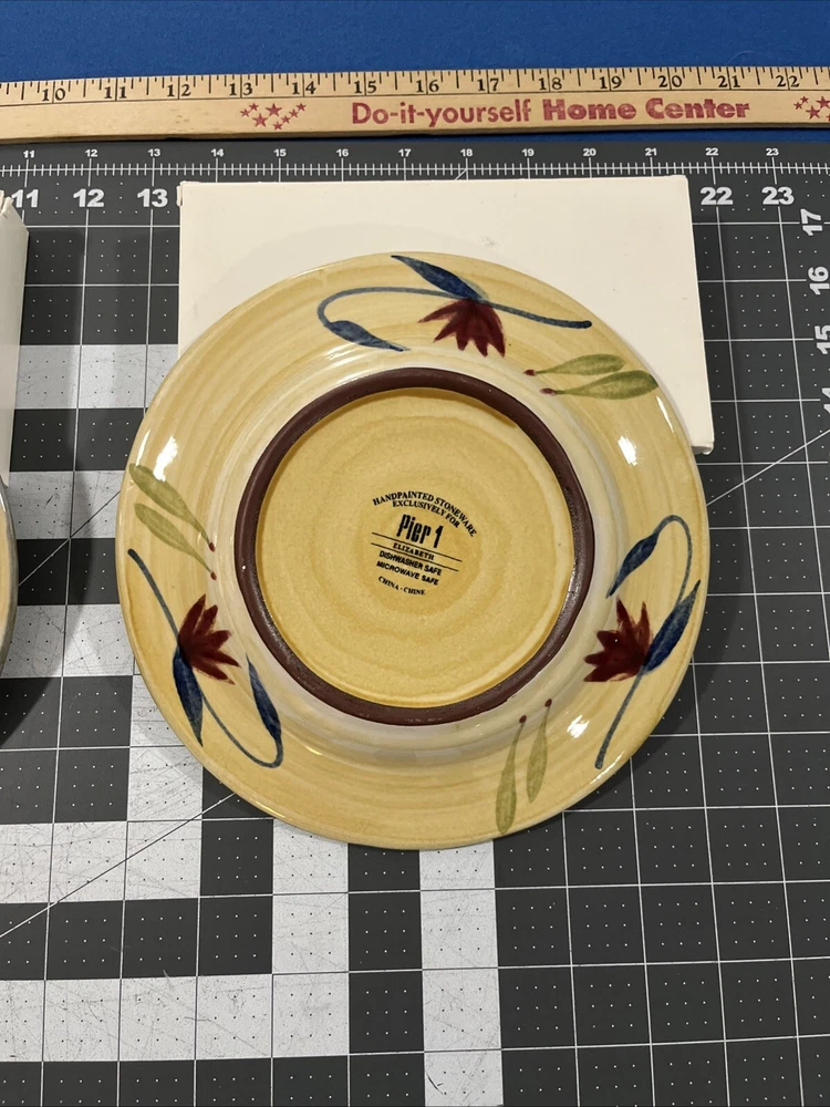 Set Includes: Salad Plate, Dessert Plate Shape: Round Type: Salad Plate Features: Hand Painted Brand: Pier 1 Product Line: Elizabeth Material: Stoneware Pattern: Floral