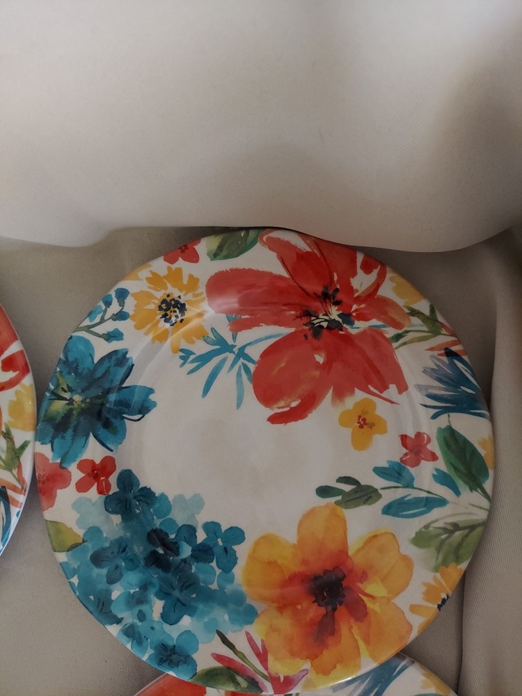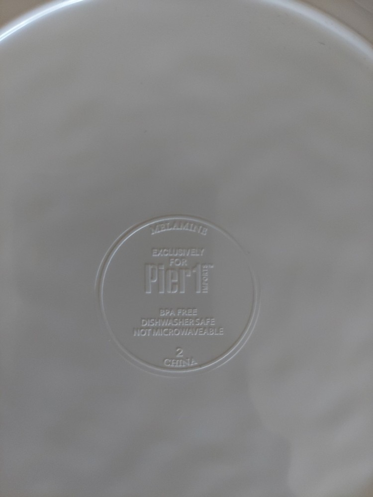 Department:AdultsShape:RoundPattern:FloralPersonalize:NoCountry of Origin:ChinaFeatures:Dishwasher SafeNumber of Items in Set:Four-PieceOccasion:All OccasionsColor:MulticolorMaterial:MelamineOriginal/Reproduction:OriginalFinish:ShinyType:Salad PlateBrand:Pier 1 Imports