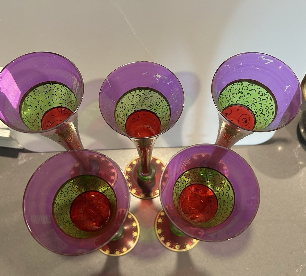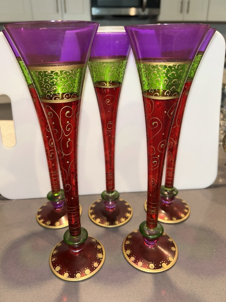 Character:naService For:5Country of Origin:UnknownTheme:Food & DrinkNumber of Items in Set:Five-PieceBrand:Pier 1Character Family:naSet Includes:Champagne FluteOccasion:All OccasionsMaterial:GlassGlassware Type:Champagne GlassPersonalize:NoFeatures:Decorated, Hand Blown, Hand PaintedType:FluteDepartment:AdultsColor:Multicolor