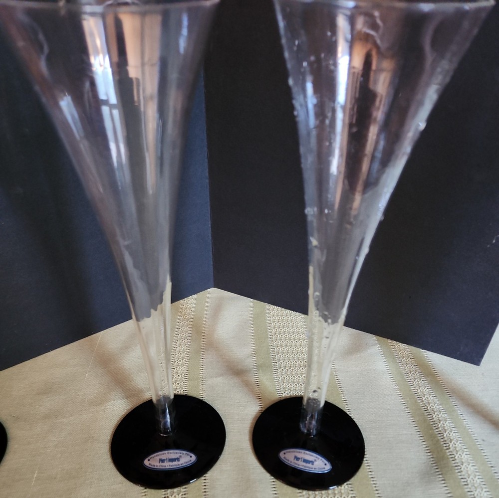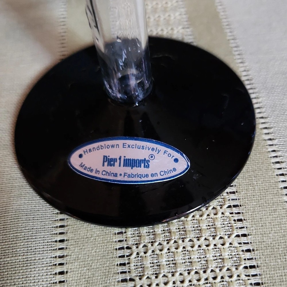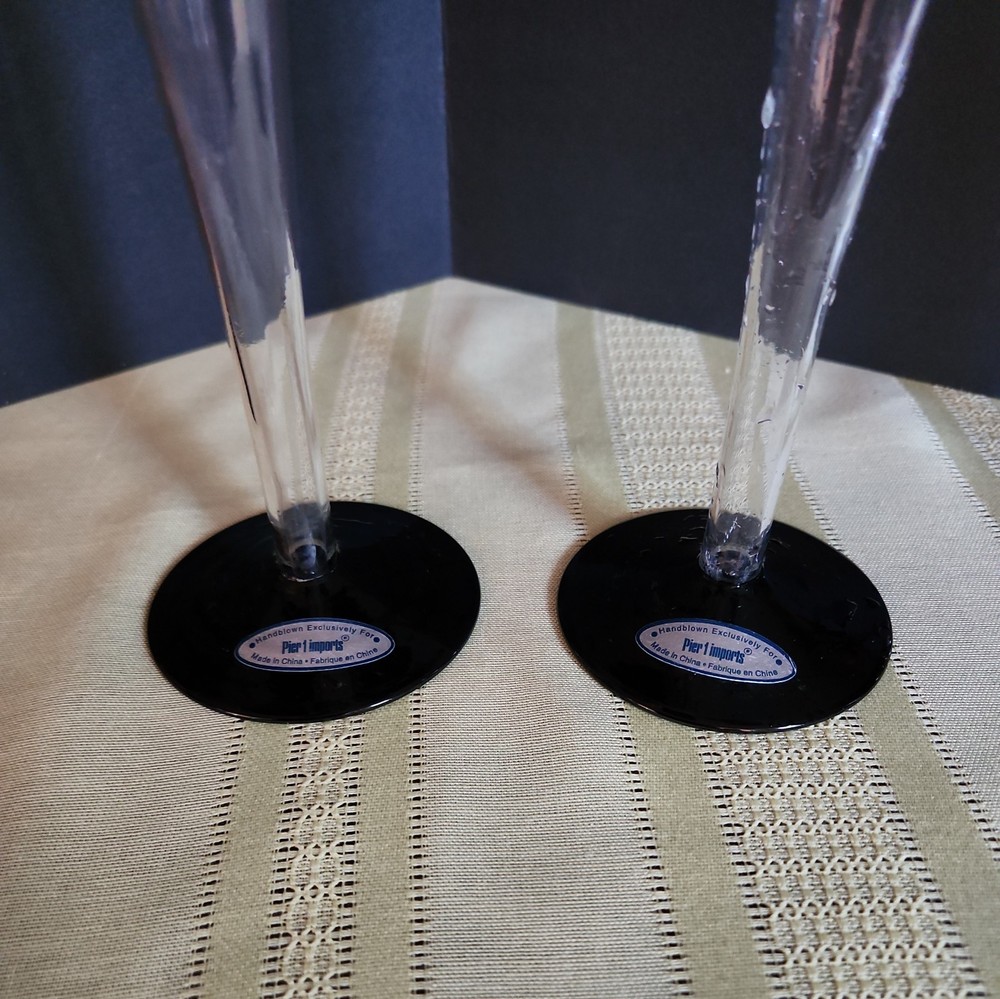 The Pier 1 Handblown Champagne Flutes are a set of four elegant champagne glasses. Made of glass and featuring a black bottom, these hand-blown flutes are perfect for any occasion. With a capacity of 150ml and a height of 10 inches, they add a touch of contemporary style to your table setting. This set, designed by Pier 1, is a must-have for anyone looking to upgrade their glassware collection.