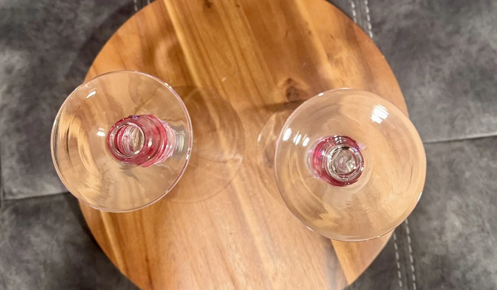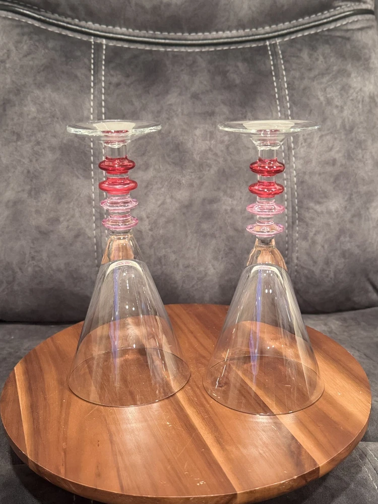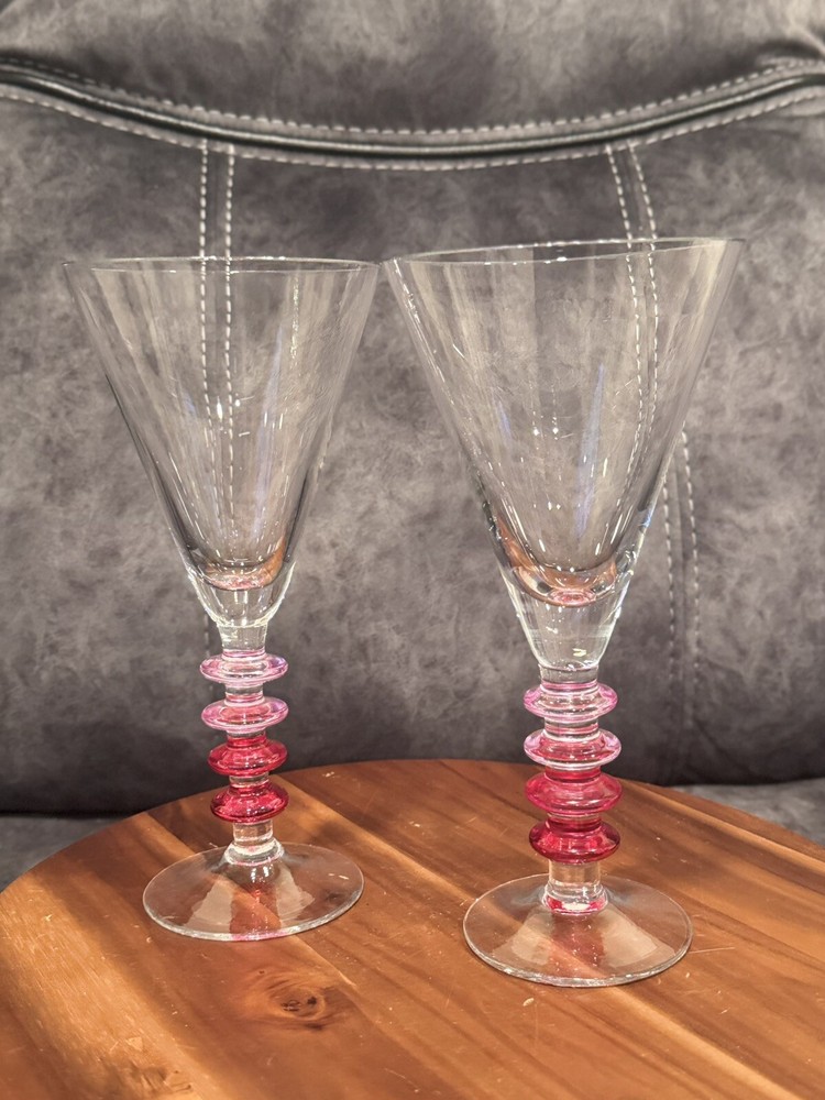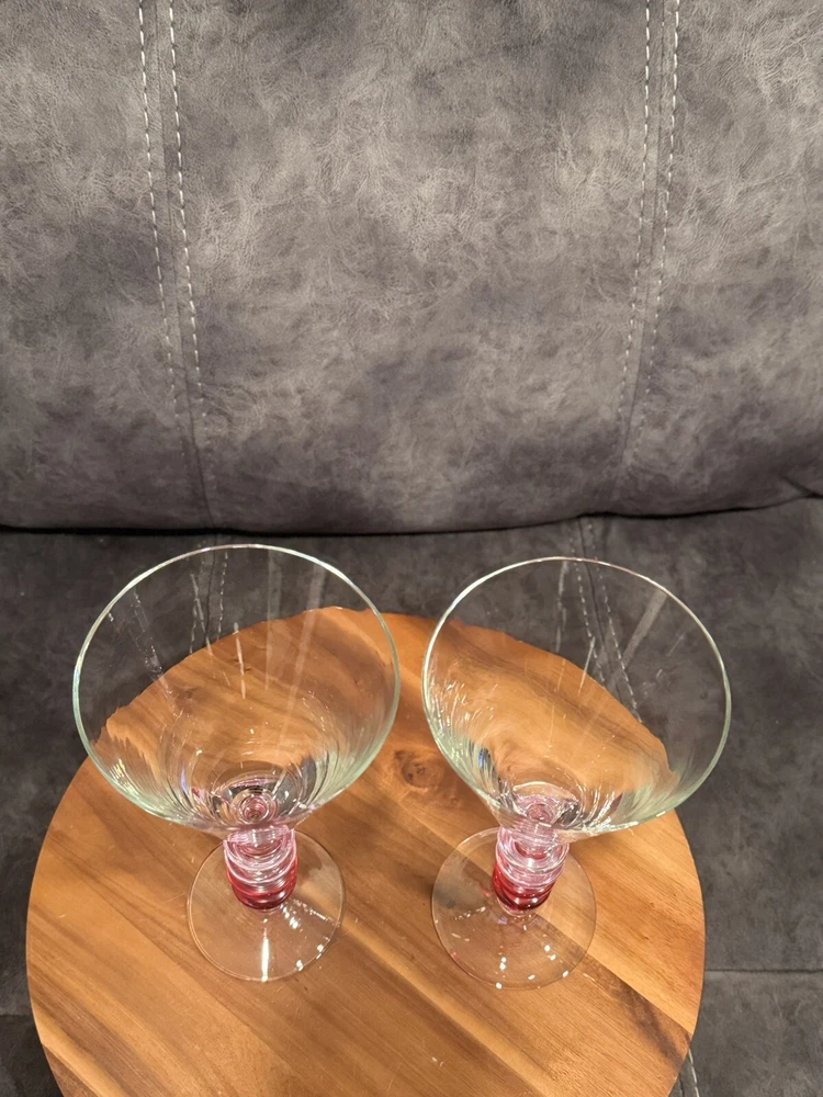 Pier 1 Pink Ribbed Martini Glasses with Ring Disks Stem