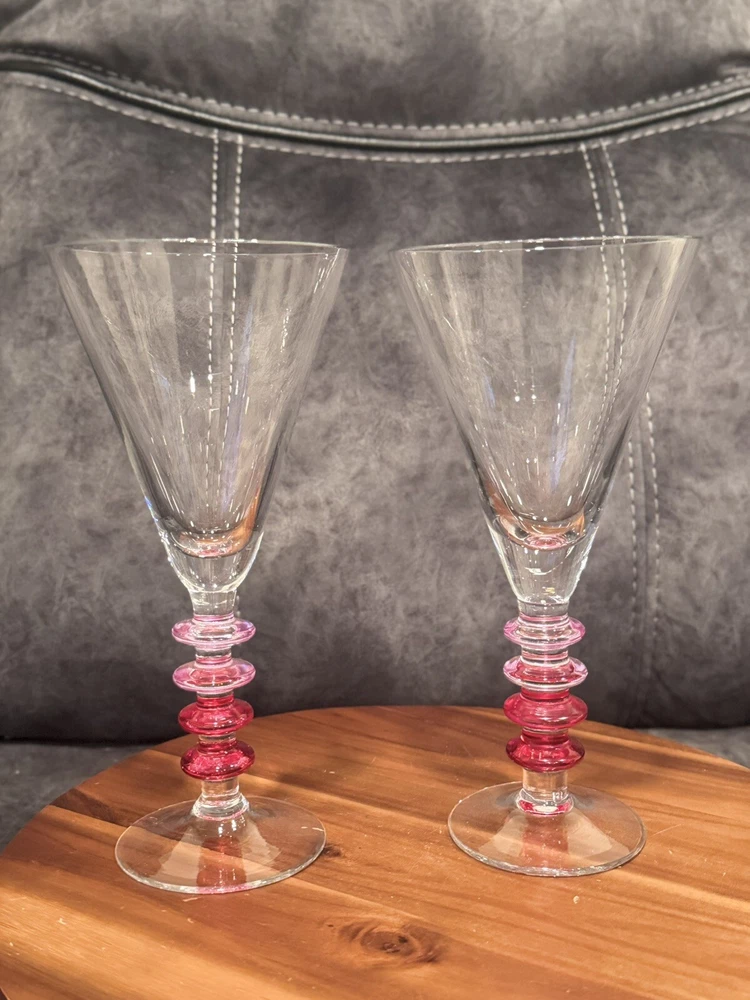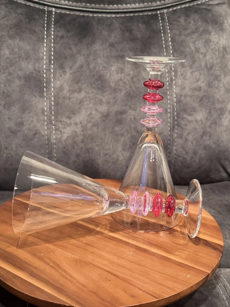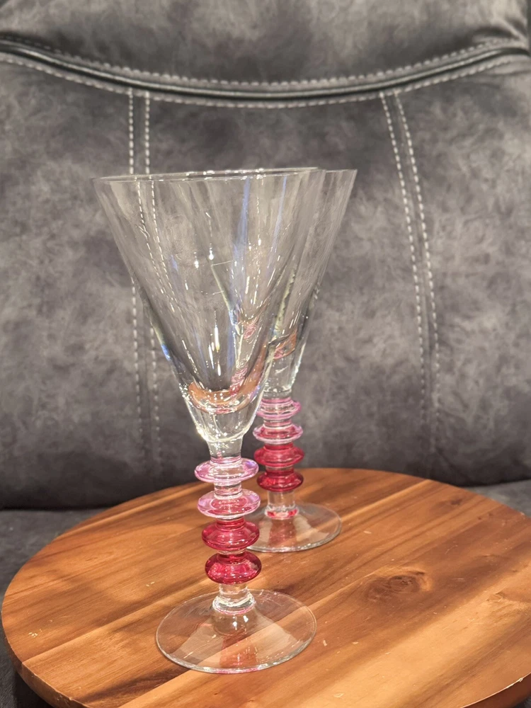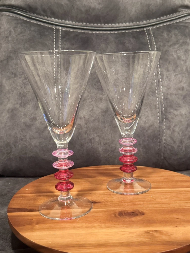 Color: Pink Glassware Type: Wine Glass Brand: Pier 1 Item Height: 9 in Set Includes: Cocktail Glass Material: Glass Type: Martini Glass