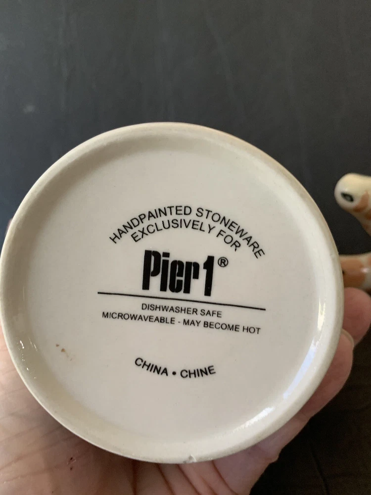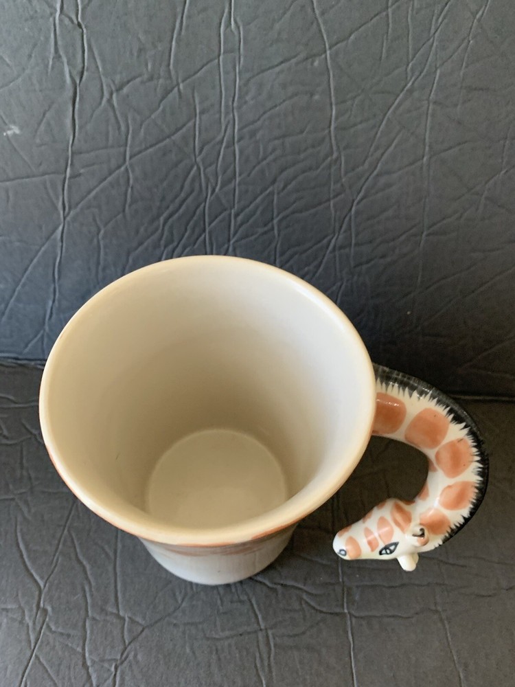 This listing is for a Pier One Imports giraffecoffee tea cup mug with the long neck of the giraffe as the handle. The mug is 4.75 inches in height.