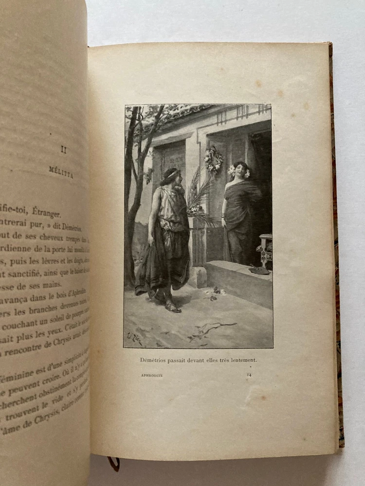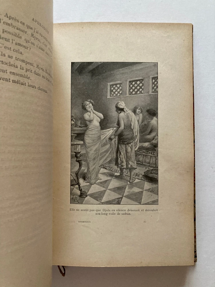 That's a beautiful, illustrated edition of Aphrodite by Pierre Lou s. The images and description give a good sense of the book's condition and features. Here is a drafted eBay listing for the book, incorporating all the details you provided, focusing on clarity, keywords, and appeal to collectors: 馃摎 eBay Listing Draft: Pierre Lou s - Aphrodite (Illustrated by 脡douard Zier, c. 1900) Title: Pierre Lou s - APHRODITE | Illustrated by Edouard Zier | Erotic Curiosa | Fine Half-Morocco Binding Description A beautiful, illustrated early 20th-century edition of Pierre Lou s's celebrated and controversial novel, Aphrodite, M艙urs Antiques (Aphrodite: Ancient Manners). Author: Pierre Lou s Illustrator: 脡douard Zier (1856-1924) Publisher: 脡ditions Jules Tallandier Location: Paris Date: S.d. (Sine dato - Undated), circa 1900 Key Features: Format: In-8 (approximately 237 x 153 mm) Collation: xiii - 374 pages. Illustrations: Fully illustrated by 脡douard Zier . The title page and interior plates are captivating examples of the period's artistic style for this genre. Binding: Handsome period binding in half-morocco (demi-maroquin rouille). Five raised bands on the spine (dos 5 nerfs). Gilt-stamped title and author ( APHRODITE P. LOU鸥S ) on the spine. Marbled paper covering the boards (as seen in IMG_9083.jpg). The spine is decorated with gilt figures of a reclining nude woman . Provenance: The original printed wrappers (couverture) are preserved and bound into the volume . Condition: This is a well-preserved copy for its age, bound in an attractive half-morocco. Exterior: Slight rubbing/scuffing to the edges and spine joints . Corners are slightly bumped . The gilt on the spine remains bright. Interior: Generally clean pages. Illustrations are crisp. Overall: A very presentable and collectible volume of a famous piece of French Curiosa/Erotic literature .
