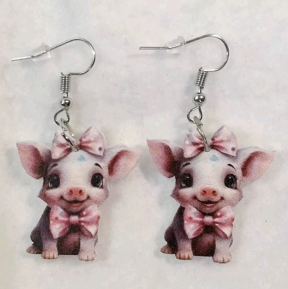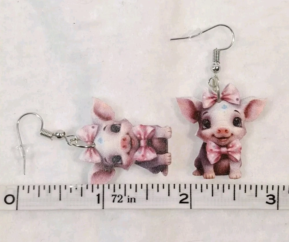 Dangle Charm Piggy Mom Gift Farm Pig Earrings Piglet Fashion Jewelry See photos for measurements Acrylic - lightweight Design on one side Please view all photos zooming in on them as they are part of the description for you to judge condition.