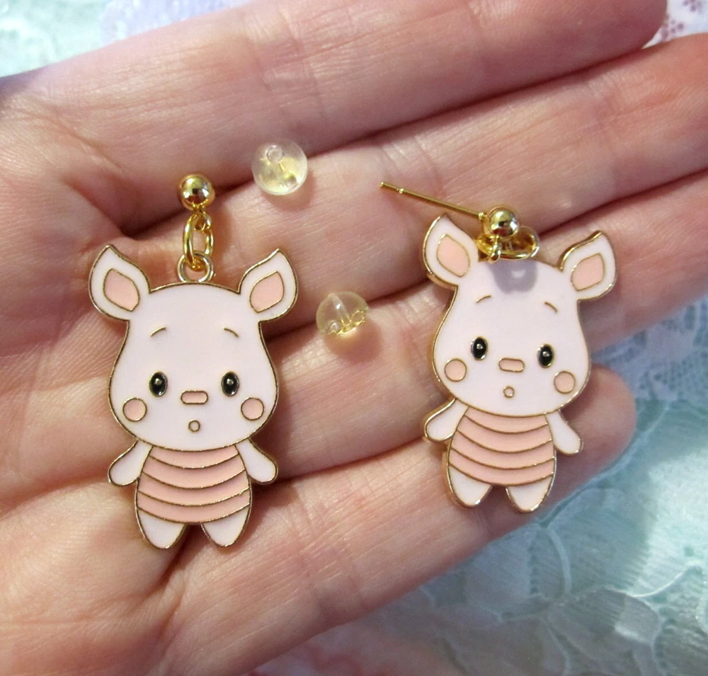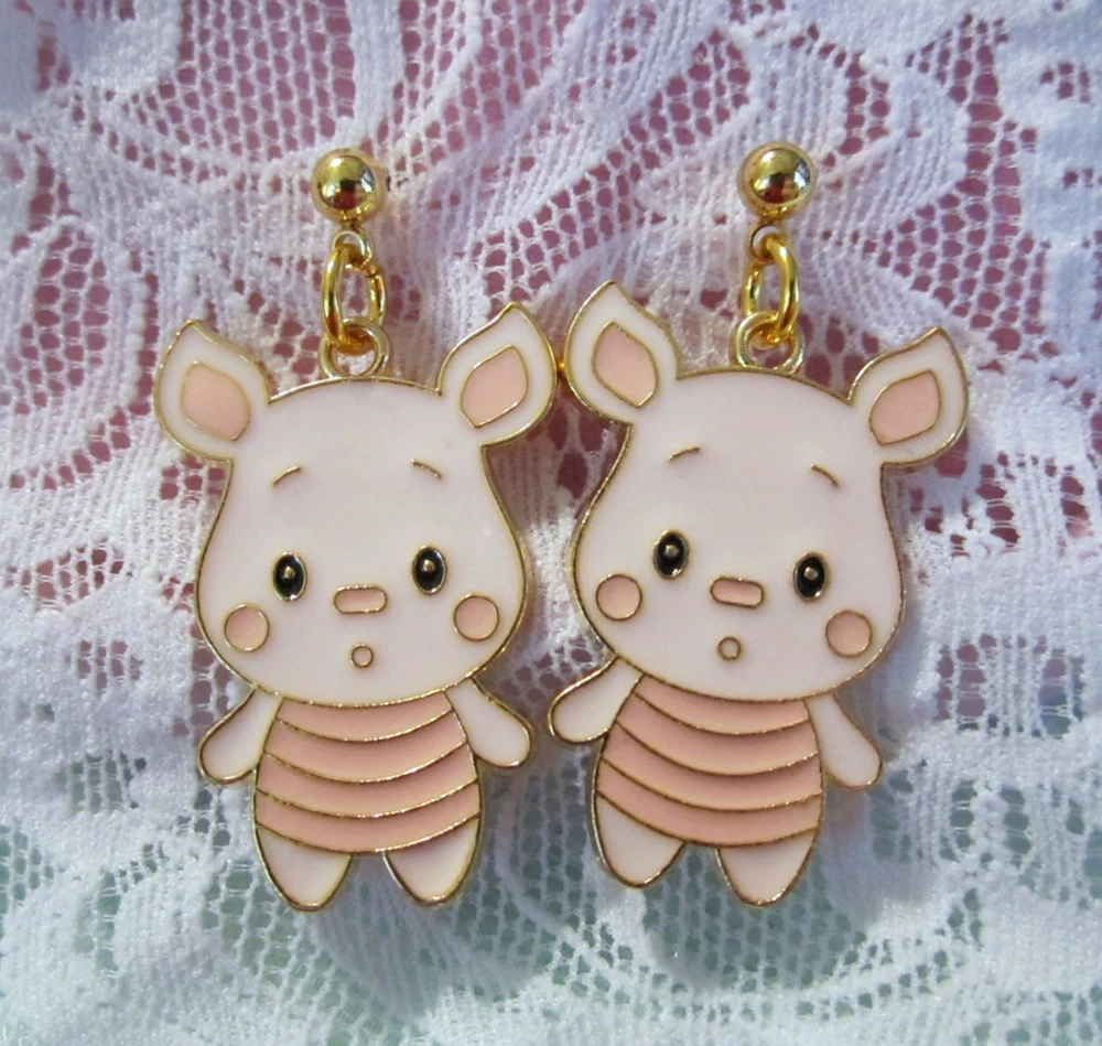DETAILS This listing is for these adorable Piglet earrings. These are handmade by me using gold ball posts. The earrings measure approx. 1-1/8 inch long by 7/8 inch wide across ears and are light weight. I only use high quality items when making my jewelry so you can be sure these are of excellent quality! Please ask any questions that you may have :-) FEEDBACK POLICY DUE TO A LARGE NUMBER OF BUYERS THAT NEVER RETURN FEEDBACK...I WILL ONLY GIVE IT AFTER THE BUYER DOES. WHEN THE BUYER RECEIVES THEIR ITEM AND LEAVES ME POSITIVE FEEDBACK, I PROMISE TO RETURN THE FEEDBACK TO THEM. SOMETIMES IT TAKES ME A FEW DAYS BUT I WILL GET IT TO YOU!! IF THE BUYER IS NOT HAPPY WITH SOMETHING I ASK THEM TO PLEASE CONTACT ME BEFORE LEAVING FEEDBACK AND GIVE ME THE FAIR CHANCE TO MAKE THINGS RIGHT!! I HOPE THAT MY BUYERS WILL UNDERSTAND AND I THANK YOU!! QUESTIONS Ask any question that you may have. If you are not happy with this item when you receive it.... please contact us instead of leaving a negative feedback. We are always willing to work anything out. Our customers come first and we want them to be happy. We always promise excellent customer service. A happy customer comes back!! We stand 100% behind our products and 100% guarantee all of them!! PAYMENT DETAILS USA and OUTSIDE USA: We accept PAYPAL payments. We do combine shipping on multiple items IF all items are paid within one payment. PLEASE WAIT FOR COMBINED SHIPPING INVOICE!! If you cannot pay with Paypal immediate, please let us know right away. This will keep us from bothering you with tons of invoices because we will know when to expect your payment!! Items MUST be paid for within 4 days. If not, We will relist the item and file a Non-Paying Bidder complaint. We truly hope that all transactions can be smooth and pleasant!! PLEASE understand that shipping is more than just stamps or postage. We do combine shipping on multiple items IF all items are paid within one payment. PLEASE WAIT FOR COMBINED SHIPPING INVOICE!! I try and ship items out within 24-48 hours after payment is received. I am very careful to package items extremely well which requires alot of high quality packing materials. Please also understand that no matter how fast I ship...the postal service is out of our control. Thank you! FOR RETURNS If you feel that you are not happy with an item, please CONTACT ME before leaving feedback. If the item is broken...I require return and will refund your payment in full when the item gets back to me. If you just dont want the item and choose a REFUND please understand that I cannot issue it until I have the item back in my home and it is in the EXACT shape as when it left. You will need to return the item at your own expense and refunds do not include shipping unless the item is broken or not as described. This is the only way that I can recover some of my costs that I would otherwise lose. THANK YOU!!
