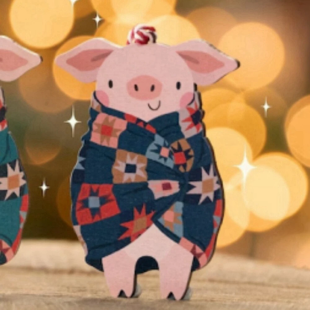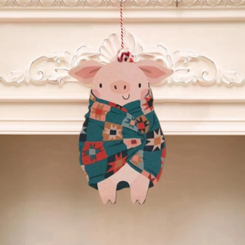 Pigs in Blankets Pendant Wooden Hanging Ornaments Cute Piglet Christmas4852