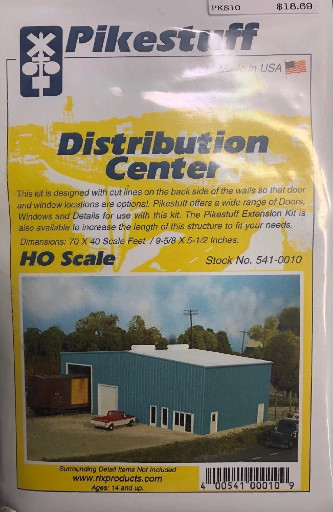 EVERY ORDER now gets a $5.00 coupon code toward your next order! Mountain Subdivision Hobbies modelrrsupply We encourage you to visit our feedback page and see what 1000's of repeat buyers say about our service! Shop us with CONFIDENCE , Save money with us! Pikestuff (Rix Products) #10 HO Scale Distribution Center (kit) Scale Dimensions: 70 X 40 Scale Feet Actual Dimensions: 9-5/8 X 5-1/2 Inches This kit is designed with cut lines on the back side of the walls so that door and window locations are optional. Kit includes doors, windows, roof vents and down spouts. Requires assembly __________________________________________________________________ Questions, Special orders, Inventory requests: Please contact us using eBay's message system. Your shipping address : IMPORTANT!! Please confirm your shipping address is correct before making payment. You know where you live, we don't! eBay does not allow us to change an address after payment is made. If you ask us to change address, it will require us to cancel your order, ask you to correct your address and redo order. Combined Shipping: International Due to eBay's new policies, they require us to require immediate payment on your purchase. PLEASE use the eBay shopping cart - it may save you money! In the event eBay overcharges you for shipping, we will send a refund for the correction. Combined Shipping Discounts: USA Due to eBay's new policies, they require us to require immediate payment on your purchase. PLEASE use the eBay shopping cart - it may save you money! If we issue a credit for overpayment of shipping, we may deduct a portion of the overpayment to cover eBay fees. eBay DOES NOT refund the fees we pay based on shipping charges if we issue a refund for shipping! Paid orders may be combined or ship as seperate orders with no shipping refund. USA Shipping: We ship using USPS First Class, Parcel Post, Priority Mail, and occasionally FedEX. We may upgrade your shipping method at our discretion. Tracking is provided. Orders over $750 will require a signature per Paypal rules. International Shipping, Customs Fees, Import Taxes and Duty: We ship USPS First Class International and Priority Mail. It's your choice! There is limited or no tracking on FCI or Flat Rate Priority Shipping. Allow two to ten weeks when choosing First Class International, but it's usually far less. Please Note: Import duties, taxes, and charges are not included in the item price or shipping cost. These charges are the buyer's responsibility. Please check with your country's customs office to determine what these additional costs will be prior to bidding or buying. Don't ask us to falsify a customs form...We will not do it. Insurance: We insure all International shipments and some domestic shipments. Our insurance carrier requires a 20 day domestic (USA) and 40 day International waiting period before we file a claim. You agree to wait the required time and agree to complete a online affidavit for the insurance company if we file a claim for your lost or damaged shipment. Shipsaver is our carrier and they provide excellent service. Handling and Shipping time: WE SHIP FAST! All orders ship same or the next day. In the event of an issue, we will message you via eBay message system. Read our feedback page to see what our customers say about us. Please be aware USA Shipping Holidays may affect International Shipments. Sales Tax: New York Residents will be charged Sales Tax - It's the law. Returns: No returns are accepted on opened items. All items we sell are covered by Manufacturer Warranty. D o not open a return case for defective items, Contact us FIRST, we'll work it out. A restocking charge of 15-20% may apply. We do not refund original shipping charges. Please review the return policy on the shipping tab. Warranty? New or Used?: Everything we sell is brand new and covered by Manufacturer's Warranty unless noted. We will assist you in the warranty process if needed. We only sell brand new items - Our items are all factory fresh! Thanks for choosing Mountain Subdivision Hobbies Supplying modelers with items from premium model railroad & DCC manufacturers since 2002