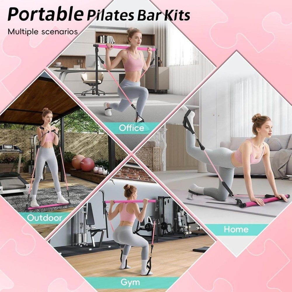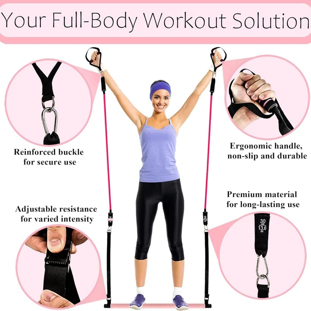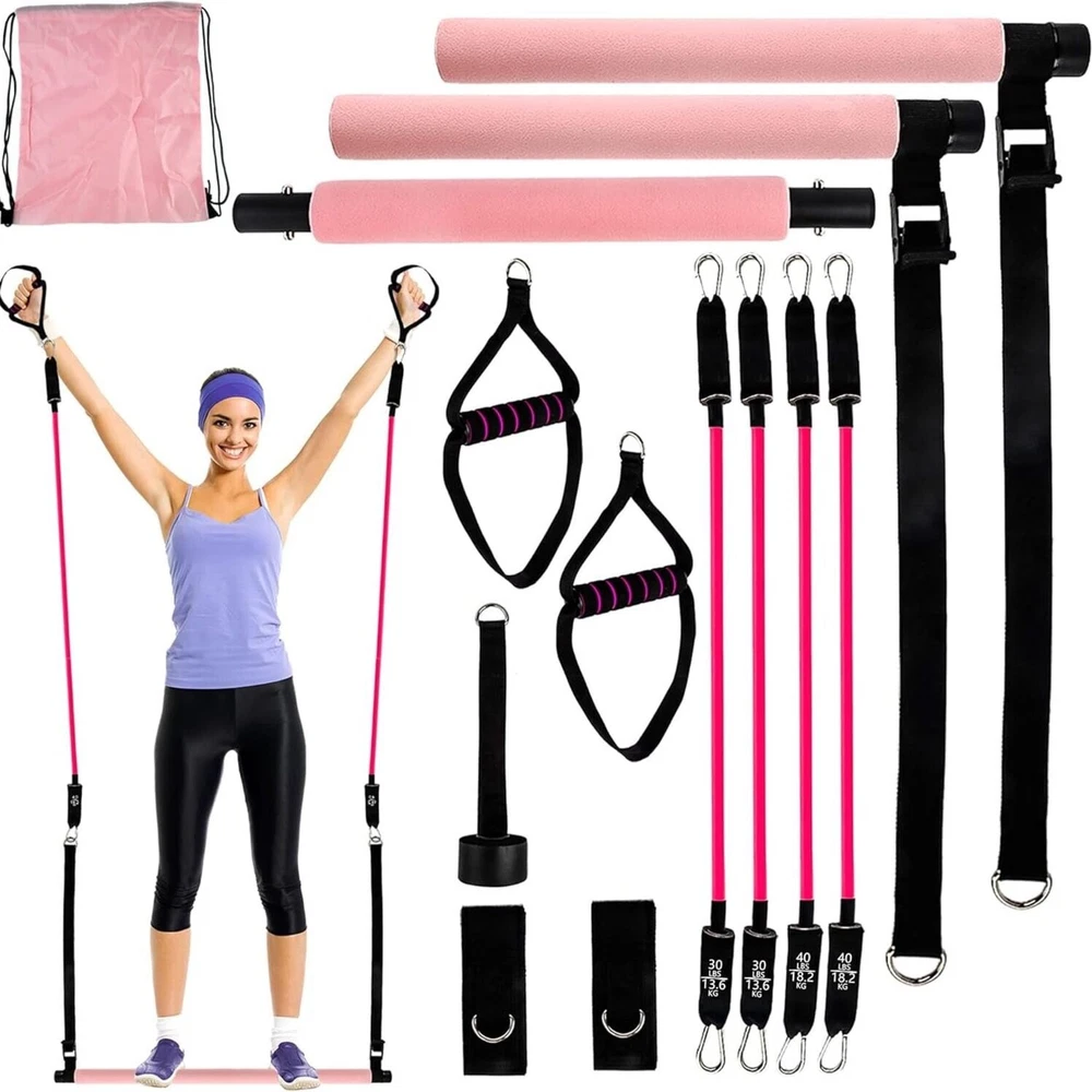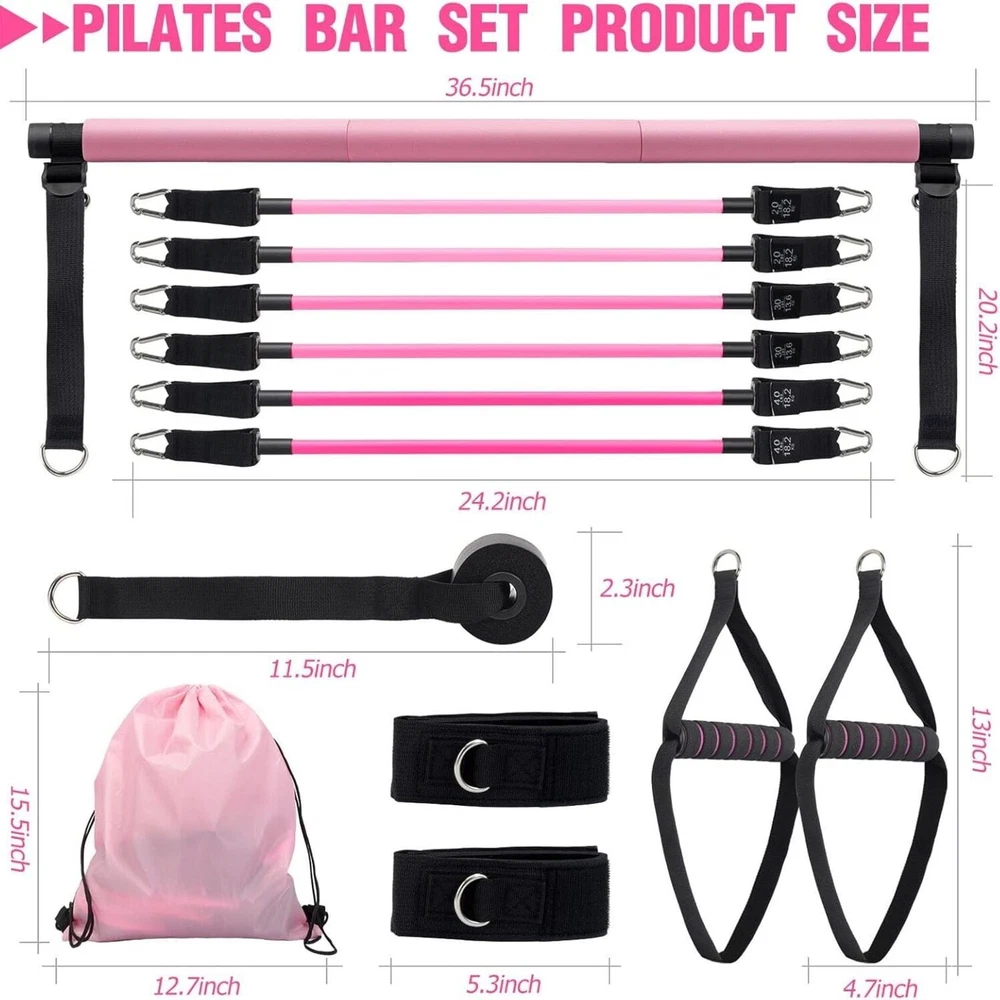Full Body Fitness Workouts Equipment: The Bar Kit is designed as all-in-one workout equipment, helping sculpt your dream body, exercise muscles, and reduce weight. The pilates bar kit can be used for various types of common core exercises including resistance bands, stretching, barbells, rowing machines, weightlifting, yoga kits, and other fitness equipment, which means that without going to the gym, now you can get the same results right from your home or anywhere you like. 6 Natural Latex Resistance Bands: The Pilates Bar Kit include 3 pairs of resistance bands (20lb/30lb/40lb) made of durable break resistant latex with poles and climbers Buckle, you can adjust the strength of the resistance bands to train according to your level. Premium Materials and Design: The Pilates bar is made from high-quality meterials to ensure durability and comfort. It features a 3-section detachable threaded steel rod with soft, comfortable foam grips that are non-slip and sweat-resistant, allowing you to hold it easily for stable and safe workouts. Various Kinds of Exercise Methods: Crafted resistance band bar kit is an ideal home workout equipment and provides many kinds of exercise methods to easily exercise your arms, back, hips, and legs. Besides, this pilates bar kit comes with 2 comfortable handles and 1 door anchor, so you can use them and choose one or more resistance bands to make a new exercise project. Customer Service: Your complete satisfaction is our ultimate goal. We guarantee you will love this home gym equipment. If you have any questions about product use, please contact u s immediately. This pilates bar kit is suitable for individuals who are 5'-5.8' tall. If you do not feel any resistance during use, you can cross the resistance bands, adjust the length of the woven straps attached to the Pilates bar, and add resistance bands of different weights to increase resistance. High Elastic Foam : Surface is easy to clean, not prone to indentation or deformation. Easy to Install : Simply rotate to complete the installation, convenient and portable. Update Nylon Fabric Connection : Use a sturdy 360° swivel latex ball cover. You can add three types of bands together on each side for more resistance weight as needed. 2 in 1 Design : The adjustable resistance band and wider foot strap, can meet the exercises of arms and legs at the same time. Item Package Dimensions : 13.94 x 5.47 x 4.29 (L x W x H)inches Package Weight : 4.01 lbs