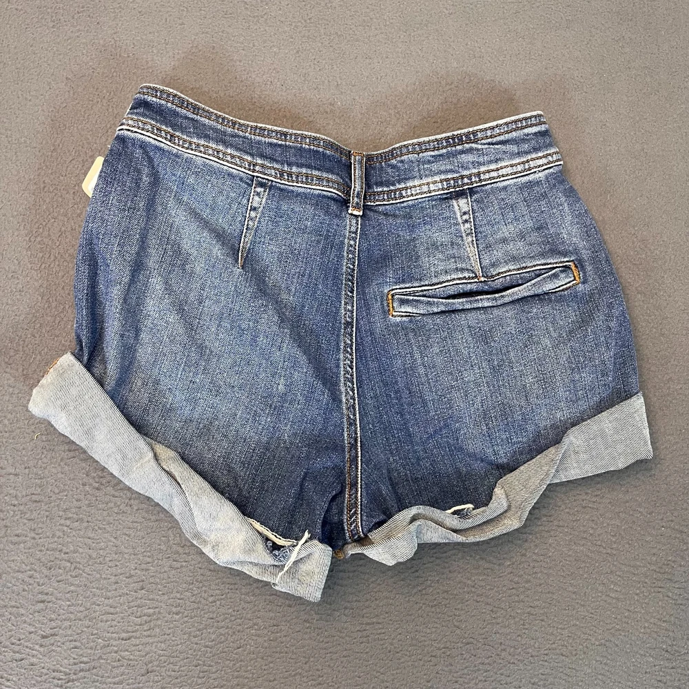 The Pilcro Anthropologie Women's Sz 25 Med Blue Denim Jean Cuffed Shorts are a stylish and versatile addition to any wardrobe. Made from durable denim fabric and featuring a flattering mid-rise cut, these shorts are perfect for various occasions including travel, parties, and casual outings. The 5-pocket design and button/zipper closure add practicality to the cut-off style, while the solid blue color and classic theme make them a timeless choice for the summer and spring seasons. Machine washable and with a comfortable regular fit, these shorts are a must-have for any fashion-conscious woman.