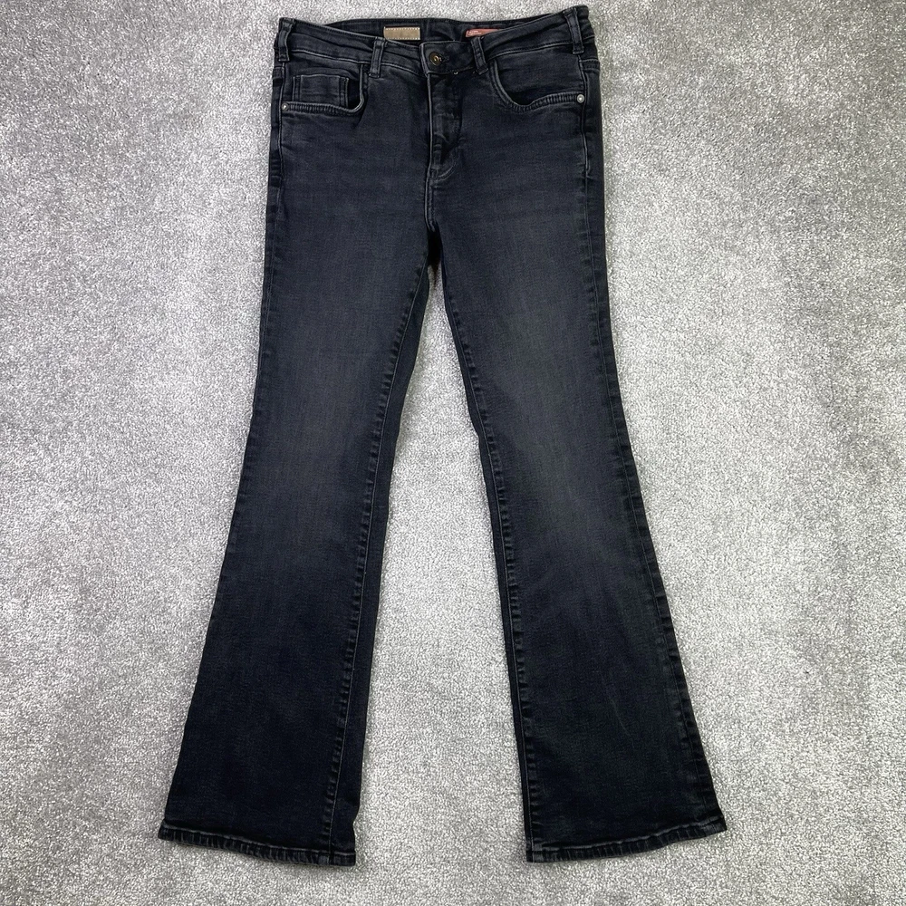 Vintage: No Country/Region of Manufacture: Türkiye Fabric Type: Denim Department: Women Features: Stretch Color: Black Waist Size: 28 in Type: Jeans Material: Cotton Blend Fabric Wash: Dark Size Type: Regular Style: Bootcut Size: 28 Garment Care: Machine Washable Inseam: 28.5 in Pattern: Solid Fit: Regular Rise: Mid (8.5-10.5 in) Theme: Bohemian, Preppy, City, Modern, Classic Pocket Type: 5-Pocket Design Season: Winter, Summer, Spring, Fall Brand: Pilcro Handmade: No Personalize: No Accents: Logo Closure: Zip