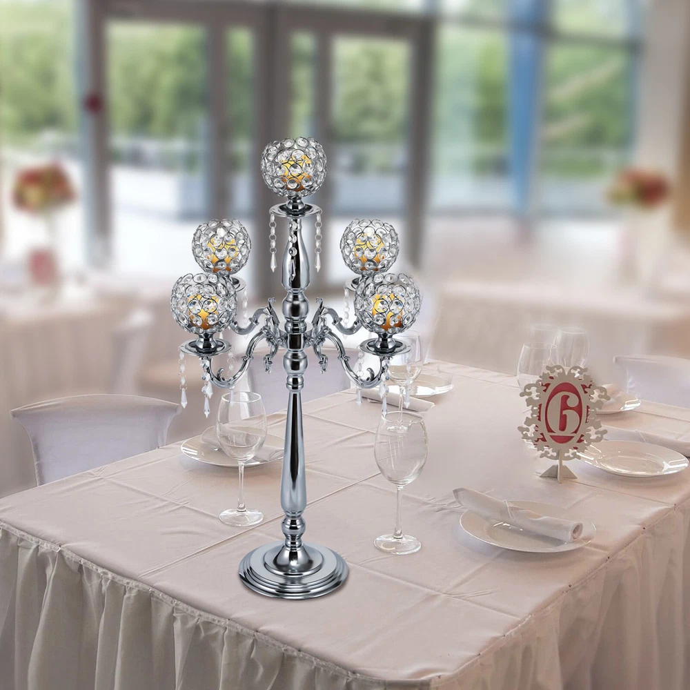 Specification Color: Silver Style: Stylish, Luxurious Material: Iron, Glass, and Acrylic Surface Treatment: Electroplating Applicable Candle Diameter: 5.5cm/ 2.17in Each Head Diameter: 10cm/ 4in Base Diameter: 36cm/ 14.2in Candle Holder Height: 75cm/ 29.5in Candle Holder Width: 55cm/ 21.6in Package Size: 50*24*24cm/ 19.69*9.45*9.45in Net Weight: 4.5kg/ 9.92lbs Gross Weight: 5kg/ 11.02lbs Package Included 1* Five-arm Candelabra Pillar Candle Display Crystal 5 Arms Candelabra Table Tall Candlesticks Holders European Style Long Table Crystal Candlestick Hotel Wedding Decoration Candlestick Decoration Romantic Atmosphere Candlestick Christmas Decoration D escription 🕯 🎅 _ Classic and timeless! Let's add a touch of old-time beauty to the tabletop and dinner setting with this five-arm candle holder, adding a pleasant and soothing mood to your dinner! With its elegant design, it is not only a candle holder but also a decoration in your room. It can be placed in your living room, bedroom and study. It can also be used as a gift for your family or friends! KEY FEATURES 🕯 5 Candle Arms The 5 arms fit all candles within 5.5cm/ 2.17in diameter. And they are set at different heights, creating a symmetrical visual appeal for you. Top Candle Holder The top candle holder is designed like the shape of a cup, and the edge is raised to ensure that the candle can be placed on it stably. Application This five-arm candelabra can be placed in the living room, bedroom, office, etc. It is also a novel gift for the graduation ceremony, anniversary, New Year, Christmas, and some other festivals. Fine Workmanship Each candle head is made of selected high-quality glass beads, and its openwork carved design conveys a sense of natural freshness and dignity. And it uses all-metal welding. Elegant Design Sparkling crystal drops glisten in the light and beautifully reflect the light onto the curved branches. Stable Placement The base of this candle holder is a 36cm/ 14.2in diameter disc design. The enlarged round base is more solid. _WHAT'S MORE_ Atmosphere Maker: Let the light be present and bring you a soothing atmosphere with candlelight. Light up the night and enjoy a spectacular candlelight show. Light Weight: With a weight of 4.5kg/ 9.92lbs, the five-arm candelabra is light enough to be moved anywhere you want, facilitating your daily use. Ideal Gift: The elegant silver look combined with the delicate engraving style gives this candle holder a gorgeous appearance, making it a great decorative piece. You can give it as a gift to your friends or family. Ideal Decoration: Put the finishing touches on dining tables with a piece of classic art. Design and decorate exquisite tables for indoor or outdoor parties or weddings. High Durability: This five-arm candelabra is made of iron, glass, and acrylic material with electroplating treatment, which makes it rust-proof and durable, allowing you to use it for a long time without worrying about fading. Easy to Clean: You can easily clean it without much effort and time because of its smooth surface and fewer gaps. If there is dust, just wipe it off with a towel. Easy to Install: The body of the candle holder is already assembled and you just need to join them together to get an elegant 5-arm candle holder! Specification 🕯 Color: Silver Style: Stylish, Luxurious Material: Iron, Glass, and Acrylic Surface Treatment: Electroplating Applicable Candle Diameter: 5.5cm/ 2.17in Each Head Diameter: 10cm/ 4in Base Diameter: 36cm/ 14.2in Candle Holder Height: 75cm/ 29.5in Candle Holder Width: 55cm/ 21.6in Package Size: 50*24*24cm/ 19.69*9.45*9.45in Net Weight: 4.5kg/ 9.92lbs Gross Weight: 5kg/ 11.02lbs Package Included 1* Five-arm Candelabra 🧐Notes Please use a soft, dry cloth for cleaning. Please note the safety rules for fire and candles. And we recommend using electronic flameless candles instead of burning candles. Please allow the slight color difference caused by the shooting light and 1-3 cm error due to manual measurement, and make sure you do not mind before ordering. Payment Delivery details Terms of sales About us Contact us Payment We accept ebay payment 。 Fees such as import duties, taxes are not included in the item price or shipping costs. These charges are the buyer's responsibility. Delivery details Shipping: 2-9 working days to: USA Terms of sales We maintain high standards of excellence and strive for hundred percent customer satisfaction. Feedback is very important to us. We hope that you contact us immediately before you give neutral or negative feedback, so that we can address your concerns. It is impossible to address issues if we do not know about them! About us Your satis faction is our ultimate goal. We work hard to earn your trust and future business. Our certified technicians have tested each item before shipping. The unit comes with 1 year limited warranty on all manufacturing defects. a) If you receive a defective item, you may return it or ask for a discount. Please contact us within 14 days after you receive the package. b) What you returned must be intact and in its original packaging as re? u. Customer is responsible for shipping costs of the returned item. c) We will cover the cost of shipping back t with the shipping rate indicated in the registration page. We will send you a new unit or refund the full payment you paid. Thank you. Contact us Business Hour Business Hour: Monday To Friday: 8:30 AM to 5:00 PM (Beijing China time) Due to time zones, our reply to your questions may not be immediately. But within above working time, we will reply your email within 24 hours. If it's non-workdays, please kindly be patient and wait till Monday. Please contact us with ebay message. Please feel free to contact us if you have any questions. Monday To Friday: 8:30 AM to 5:00 PM (Beijing China time) Due to time zones, our reply to your questions may not be immediately. But within above working time, we will reply your email within 24 hours. If it's