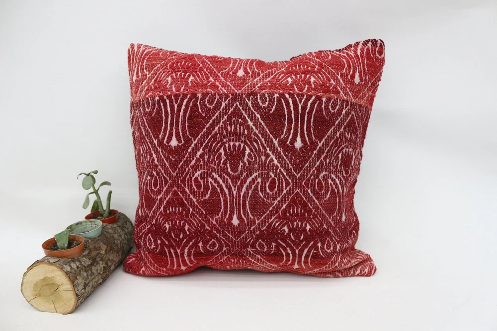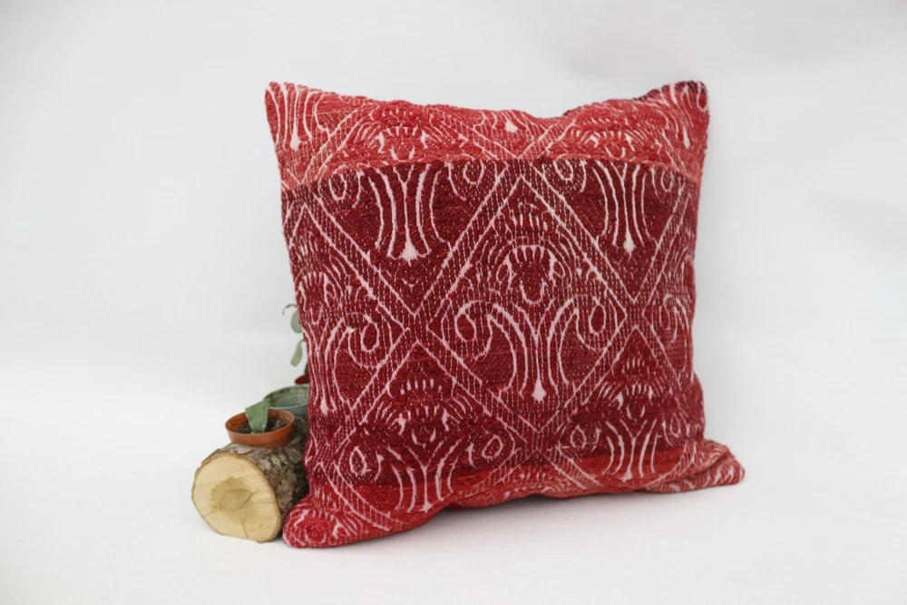 Pillow Case, Kilim Pillow Cover, 16"x16" Red Kilim Pillow, Personalized Gift