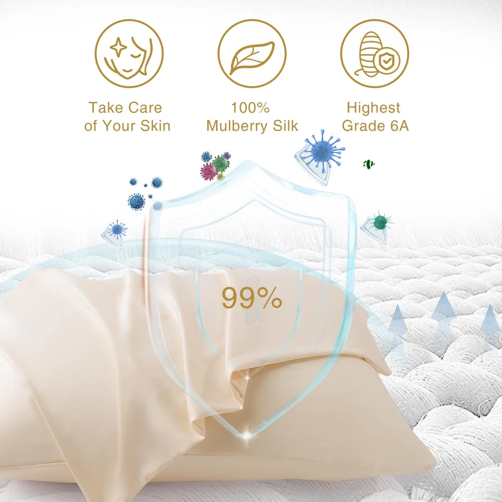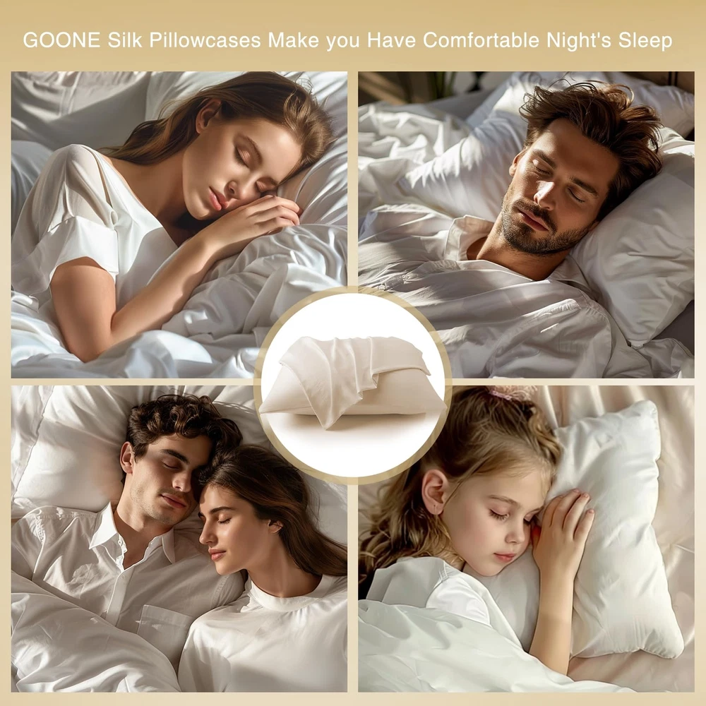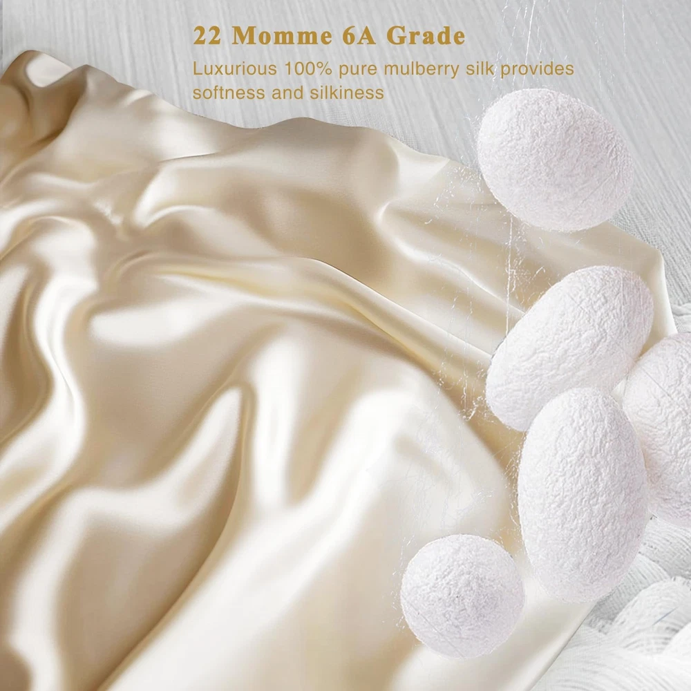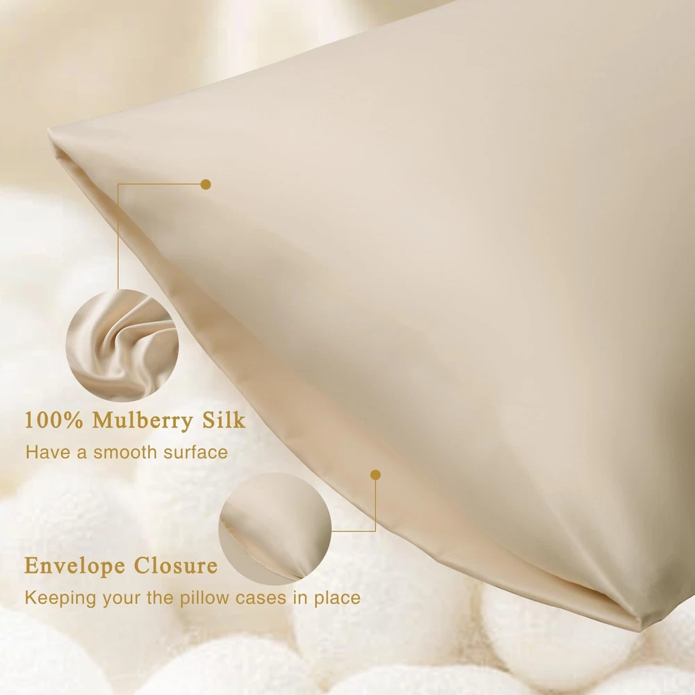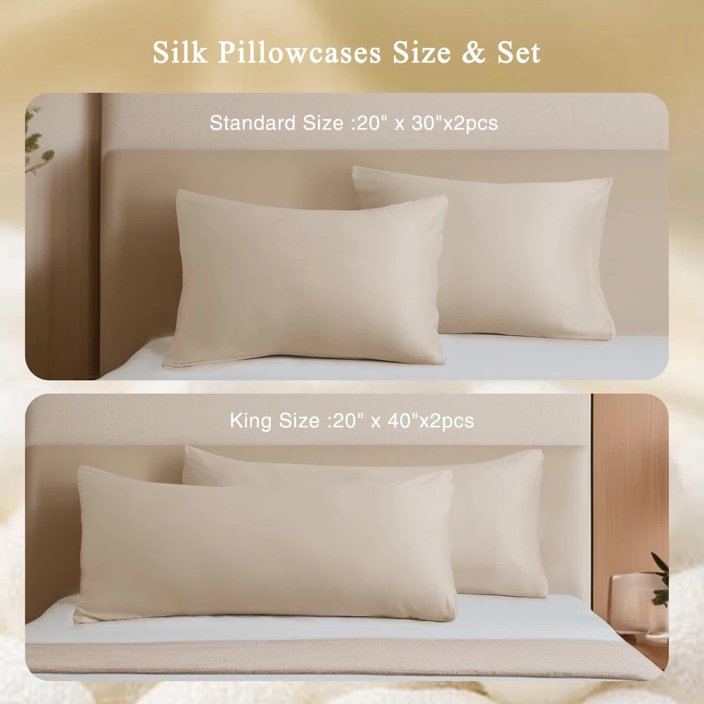 Made of pure mulberry silk: Silk pillow cases are made from double sided 6A grade 22 Momme 100% pure mulberry silk, it is very good soft, smooth, breathable, cool and skin-friendly. High quality silk pillow cases can have a comfortable sleeping environment and improve the quality of sleep Take care of your hair and face: Silk is a premium material that helps keep skin moisturised, moisture balanced and reduces acne. The smooth surface of silk pillow cases prevents friction and static electricity, reducing hair frizz and damage Perfect craftsmanship: The silk pillow cases are meticulously crafted ,it has an envelope closure opening, easy to cover the pillow. The mulberry silk pillow cases are meticulously stitched, with neat and fine stitches, making it sturdy and long lasting Two pieces mulberry silk pillow cases: The size of slik pillow cases : Queen Size : 20 inch x 30 inch ,King Size : 20 inch x 40 inch . Silk naturally is good for the human body,giving you a good night's sleep Beautifully packaged in an envelope for ideal gift : Silk is symbol of love and nobility and elegance,so silk pillow cases are ideal gift choices for birthdays,anniversaries, Valentine's Day,Mother's Day, Christmas,Thanksgiving,New Year's Day