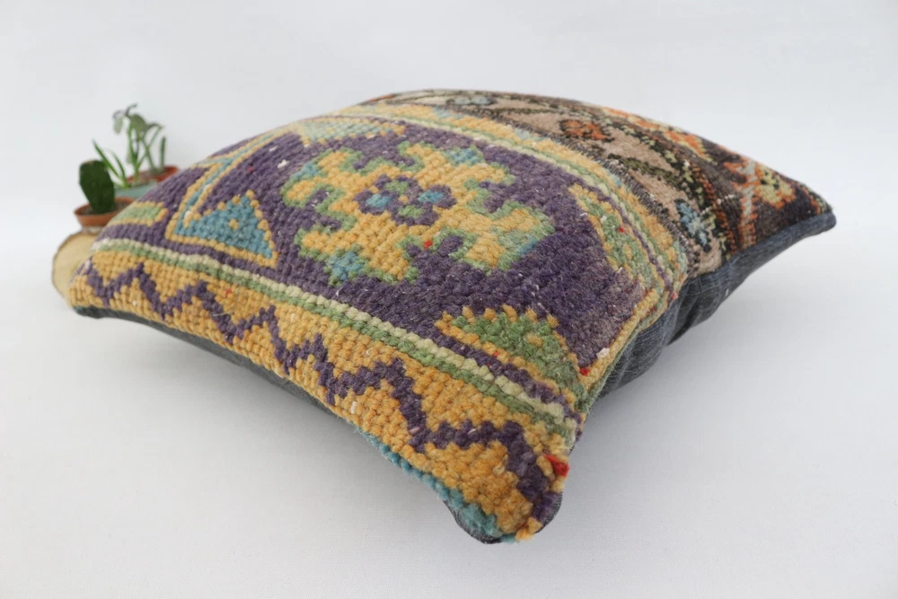 Kilim Pillow Details: All of my beautiful pillow covers or cushion cases are designed and made by me. I am making my throw pillow covers from handmade vintage rugs, Turkish rugs. Therefore, each of my vintage kilim pillowcase is one of kind. These cushions covers are piece of an art. The size of this pillow is 16 x 16 inches or 40 x 40 cm. The front side of this decorative pillow cover, cushion cover is wool on wool vintage kilim rug. The backside of this throw is high quality cotton fabric with a high quality zipper. This listing has 2 option for this handmade pillow. You can choose with insert or without insert. The listing photos is with insert in the pillowcase which is just for demonstration purpose. All of my vintage Turkish rugs have been professionally washed before I cut them as pillow case or cushion case so these kilim covers are 100 posent clean and ready to use. Due to the age and handmade nature of these vintage rugs, there might be imperfections and flaws that are not considered defects. This is a piece of a handmade vintage rug with minor signs of wear consistent with age and use that give it an antique look. You can see the condition of the rug pillow clearly in the detailed photos. I am going to ship your order of decorative pillow as soon as possible. I usually ship in the next day with DHL Express or FedEx which will deliver the kilim pillow, cushion cover just in 3-5 business days. It is my responsible until you receive pillow cover or pillow cover with insert at your door. If the pillow cover or insert get lost or damage during the shipping, I will ship the new kilim pillow cover or pillow insert for free as soon as possible. I take photos of my throw pillows indoor with professional camera which shows the real colors. The photos of these Turkish pillow covers are not altered. Keep in mind the colors of the rug vary slightly in different lights. Please contact to me for additional photos. I take the photos of my vintage rugs outside with daylight to show you the real and natural colors. My photos are not altered. Keep in mind the colors of the rug vary slightly in different lights. Please contact to me for additional photos. SATISFACTION GUARANTEED for your order in my shop. Your SATISFACTION is the most important to me. Please write me if you have any question or if you don't like anything from my pillow covers, cushion covers. If any reason, you are not happy from your Turkish pillow cover, I accept return without any hassle. Please read my shop policies for details. This cushion case or pillow cover can be used as decorative throw pillow, gift pillow, Christmas pillow case, bedding pillow, lumbar pillow, sofa pillow, bohemian pillow, boho pillow. You can find in any kind of Turkish kilim pillow cover in different design such as striped pillow, embroidered pillow, and geometric pillow.