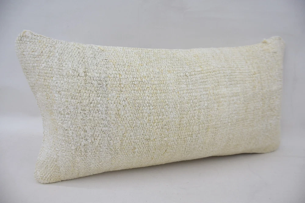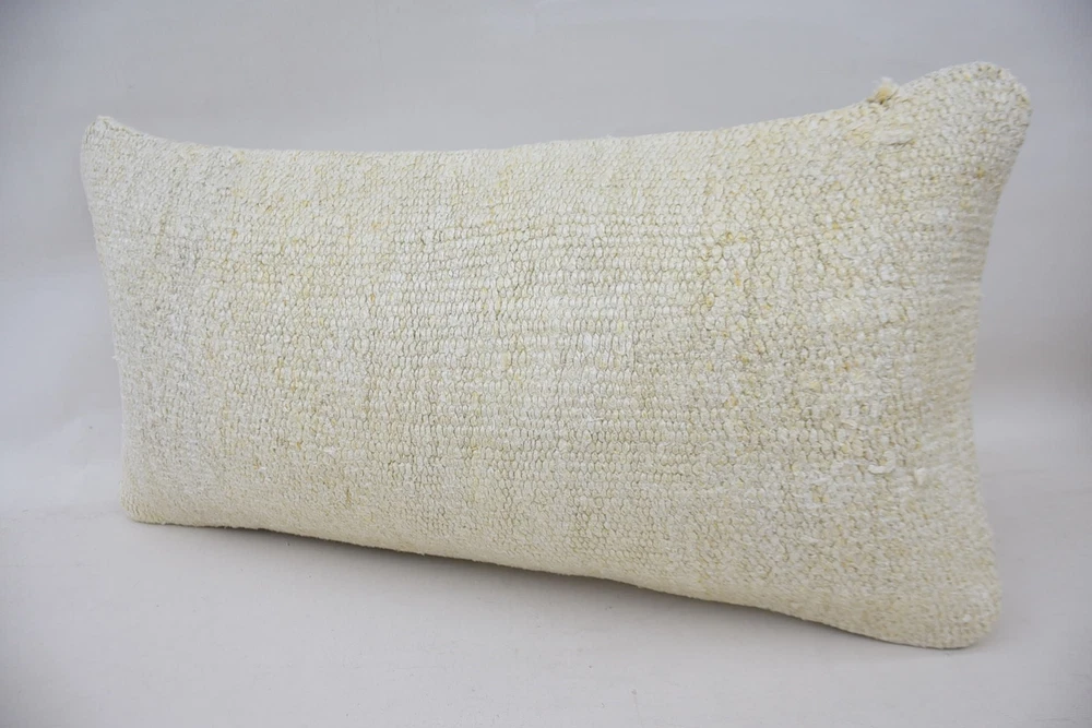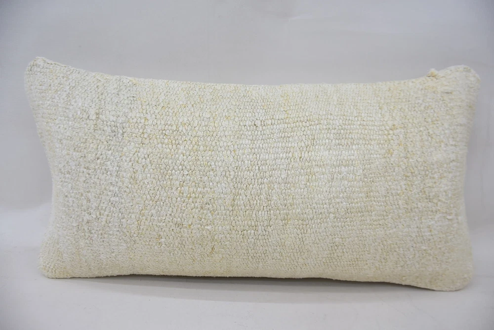 Pillow for Couch, 12"x24" White Cushion Case, Turkish Kilim Pillow