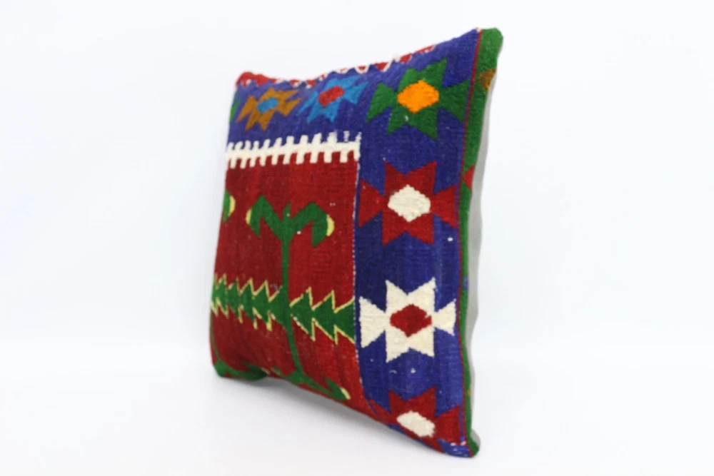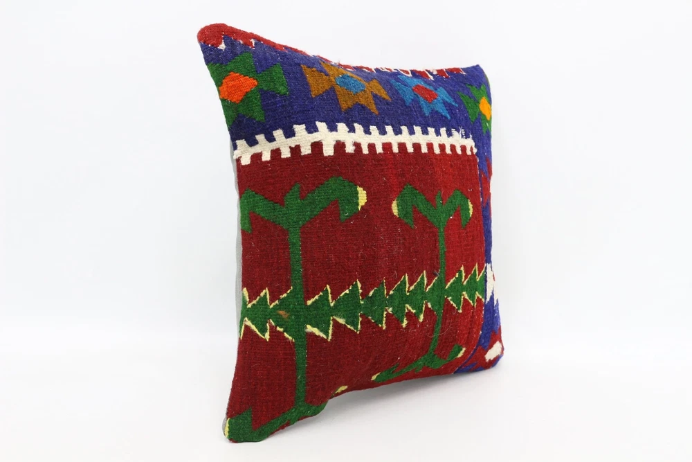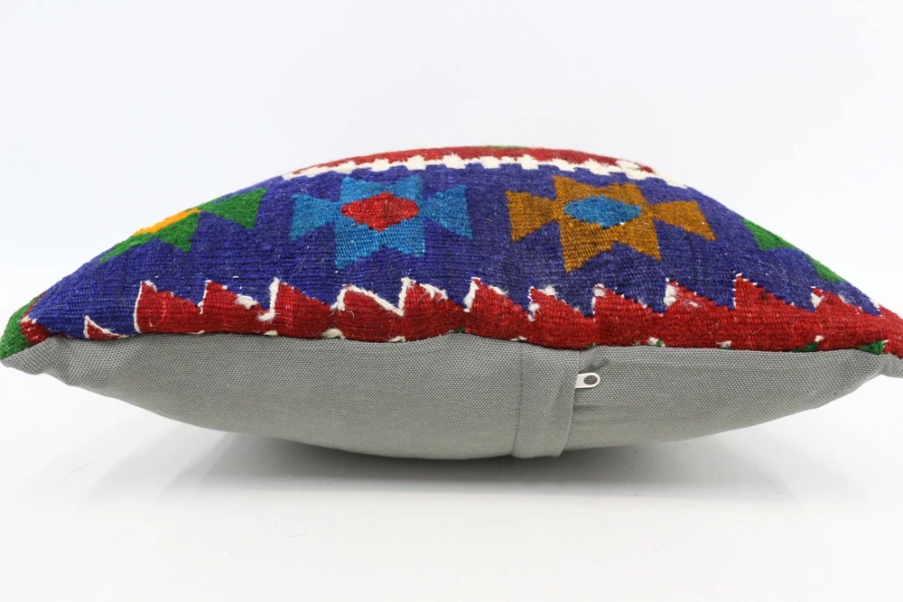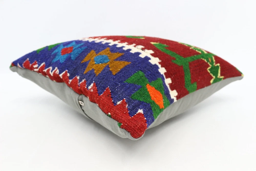 Kilim Pillow Details: All of my beautiful pillow covers or cushion cases are designed and made by me. I am making my throw pillow covers from handmade vintage rugs, Turkish rugs. Therefore, each of my vintage kilim pillowcase is one of kind. These cushions covers are piece of an art. The size of this pillow is 18 x 18 inches or 45 x 45 cm. The front side of this decorative pillow cover, cushion cover is wool on wool vintage kilim rug. The backside of this throw is high quality cotton fabric with a high quality zipper. This listing has 2 option for this handmade pillow. You can choose with insert or without insert. The listing photos is with insert in the pillowcase which is just for demonstration purpose. All of my vintage Turkish rugs have been professionally washed before I cut them as pillow case or cushion case so these kilim covers are 100 posent clean and ready to use. Due to the age and handmade nature of these vintage rugs, there might be imperfections and flaws that are not considered defects. This is a piece of a handmade vintage rug with minor signs of wear consistent with age and use that give it an antique look. You can see the condition of the rug pillow clearly in the detailed photos. I am going to ship your order of decorative pillow as soon as possible. I usually ship in the next day with DHL Express or FedEx which will deliver the kilim pillow, cushion cover just in 3-5 business days. It is my responsible until you receive pillow cover or pillow cover with insert at your door. If the pillow cover or insert get lost or damage during the shipping, I will ship the new kilim pillow cover or pillow insert for free as soon as possible. I take photos of my throw pillows indoor with professional camera which shows the real colors. The photos of these Turkish pillow covers are not altered. Keep in mind the colors of the rug vary slightly in different lights. Please contact to me for additional photos. I take the photos of my vintage rugs outside with daylight to show you the real and natural colors. My photos are not altered. Keep in mind the colors of the rug vary slightly in different lights. Please contact to me for additional photos. SATISFACTION GUARANTEED for your order in my shop. Your SATISFACTION is the most important to me. Please write me if you have any question or if you don't like anything from my pillow covers, cushion covers. If any reason, you are not happy from your Turkish pillow cover, I accept return without any hassle. Please read my shop policies for details. This cushion case or pillow cover can be used as decorative throw pillow, gift pillow, Christmas pillow case, bedding pillow, lumbar pillow, sofa pillow, bohemian pillow, boho pillow. You can find in any kind of Turkish kilim pillow cover in different design such as striped pillow, embroidered pillow, and geometric pillow.