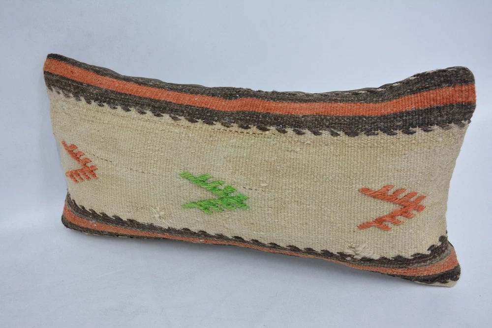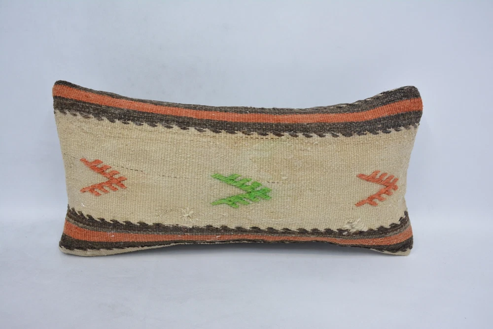 Pillow for Couch, Kilim Pillows, 12"x24" Beige Pillow, Kilim Pillow Cover