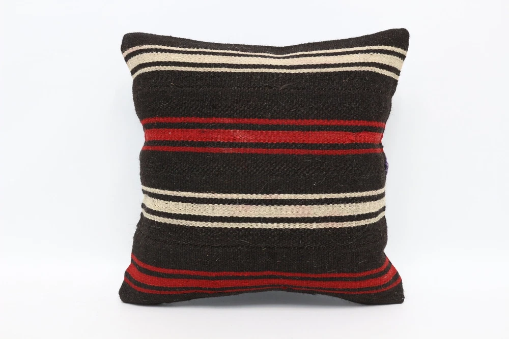 Kilim Pillow Details: All of my beautiful pillow covers or cushion cases are designed and made by me. I am making my throw pillow covers from handmade vintage rugs, Turkish rugs. Therefore, each of my vintage kilim pillowcase is one of kind. These cushions covers are piece of an art. The size of this pillow is 18 x 18 inches or 45 x 45 cm. The front side of this decorative pillow cover, cushion cover is wool on wool vintage kilim rug. The backside of this throw is high quality cotton fabric with a high quality zipper. This listing has 2 option for this handmade pillow. You can choose with insert or without insert. The listing photos is with insert in the pillowcase which is just for demonstration purpose. All of my vintage Turkish rugs have been professionally washed before I cut them as pillow case or cushion case so these kilim covers are 100 posent clean and ready to use. Due to the age and handmade nature of these vintage rugs, there might be imperfections and flaws that are not considered defects. This is a piece of a handmade vintage rug with minor signs of wear consistent with age and use that give it an antique look. You can see the condition of the rug pillow clearly in the detailed photos. I am going to ship your order of decorative pillow as soon as possible. I usually ship in the next day with DHL Express or FedEx which will deliver the kilim pillow, cushion cover just in 3-5 business days. It is my responsible until you receive pillow cover or pillow cover with insert at your door. If the pillow cover or insert get lost or damage during the shipping, I will ship the new kilim pillow cover or pillow insert for free as soon as possible. I take photos of my throw pillows indoor with professional camera which shows the real colors. The photos of these Turkish pillow covers are not altered. Keep in mind the colors of the rug vary slightly in different lights. Please contact to me for additional photos. I take the photos of my vintage rugs outside with daylight to show you the real and natural colors. My photos are not altered. Keep in mind the colors of the rug vary slightly in different lights. Please contact to me for additional photos. SATISFACTION GUARANTEED for your order in my shop. Your SATISFACTION is the most important to me. Please write me if you have any question or if you don't like anything from my pillow covers, cushion covers. If any reason, you are not happy from your Turkish pillow cover, I accept return without any hassle. Please read my shop policies for details. This cushion case or pillow cover can be used as decorative throw pillow, gift pillow, Christmas pillow case, bedding pillow, lumbar pillow, sofa pillow, bohemian pillow, boho pillow. You can find in any kind of Turkish kilim pillow cover in different design such as striped pillow, embroidered pillow, and geometric pillow.
