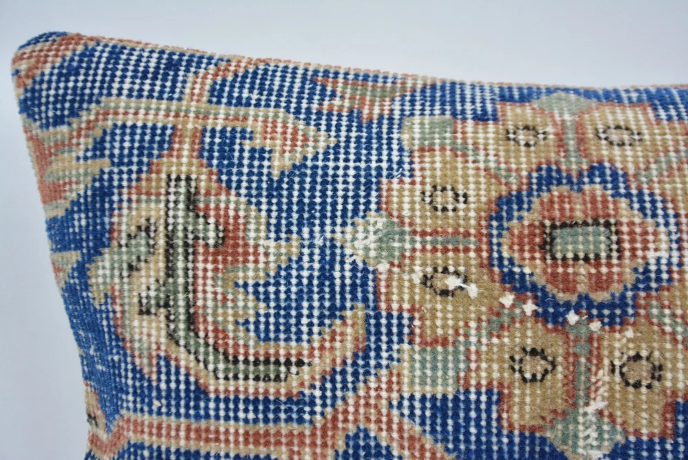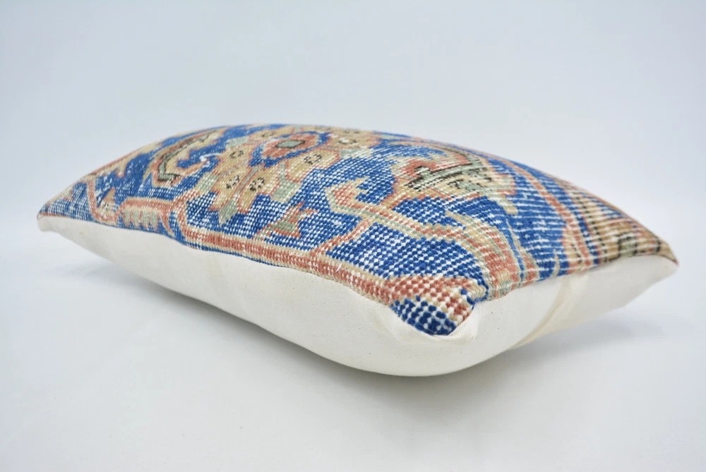 Pillow for Sofa, 12"x24" Blue Cushion, Kilim Pillow Covers, Home Decor Pillow
