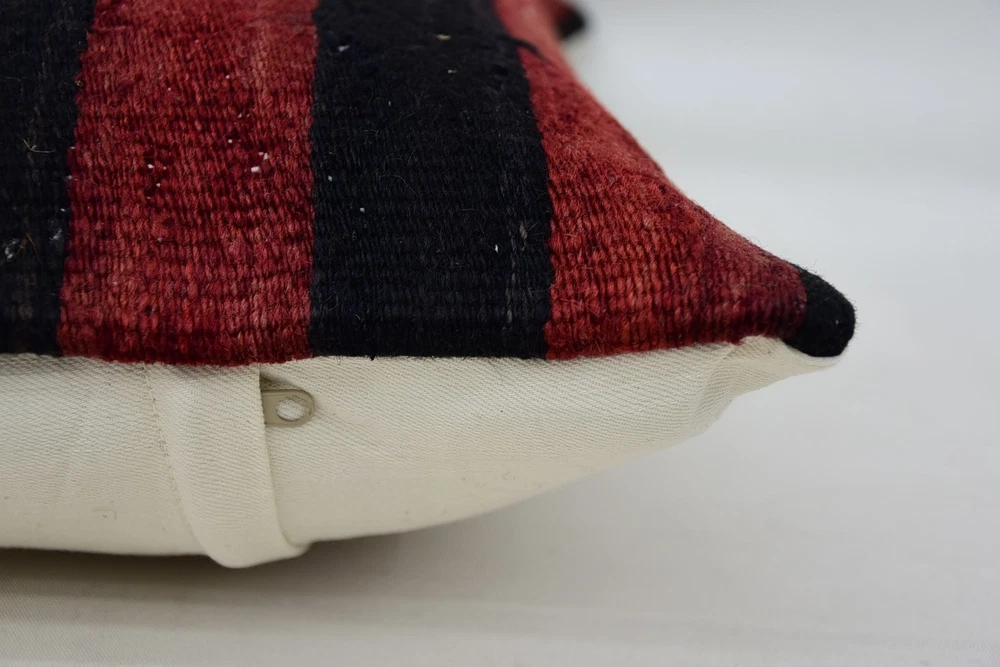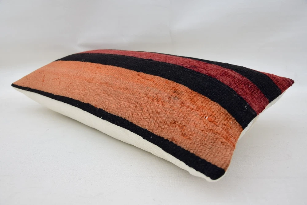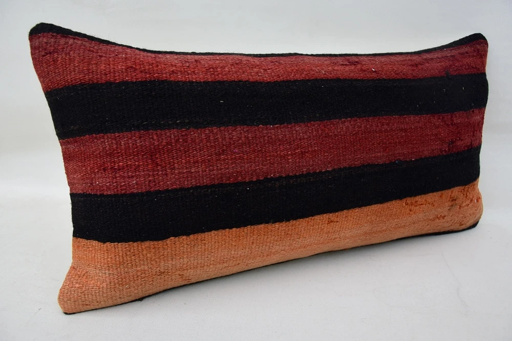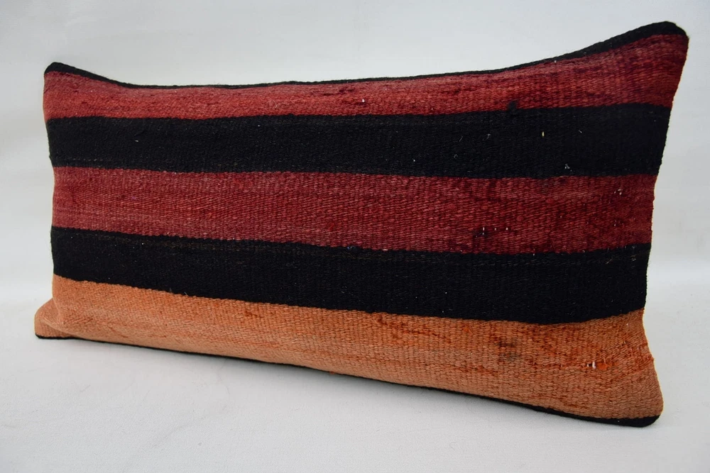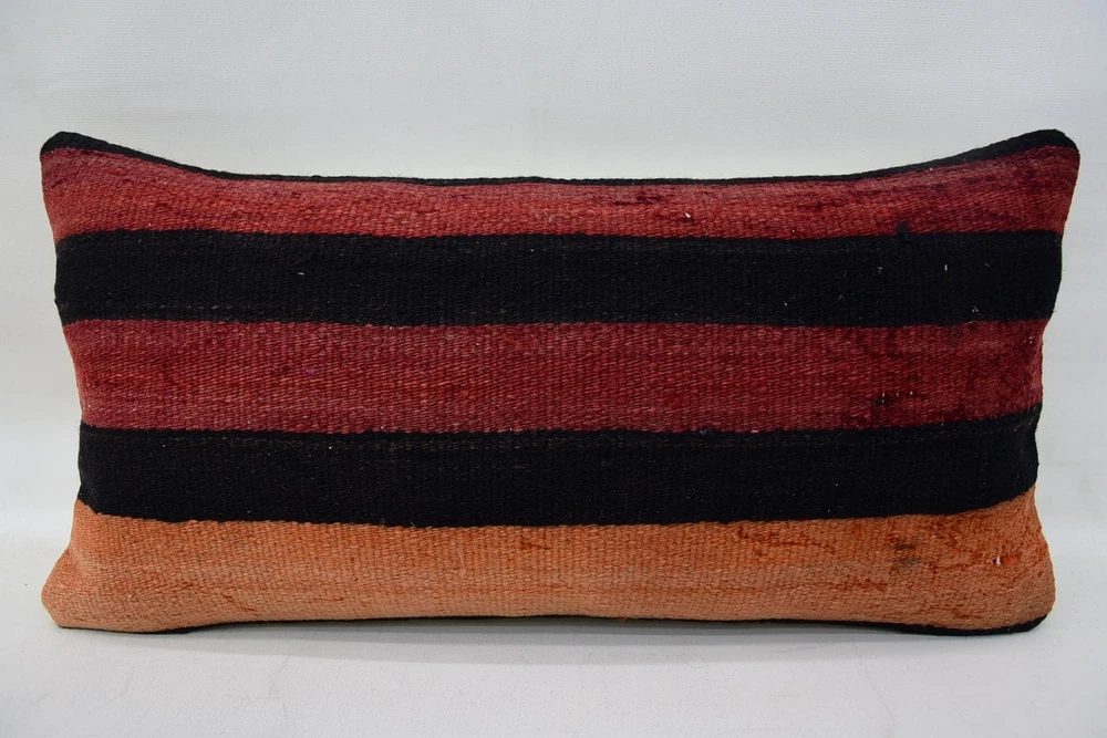 Pillow for Sofa, 12"x24" Red Cushion Case, Turkish Kilim Pillow