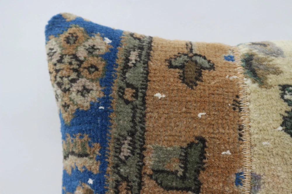 Pillow for Sofa, 14"x14" Blue Pillow Case, Gift Pillow, Turkish Kilim Pillow