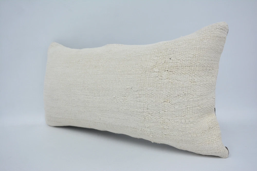 Pillow for Sofa, Kilim Pillow Cases, Turkish Pillow, 12"x24" White Pillow