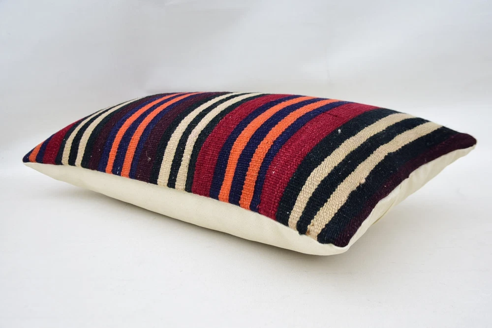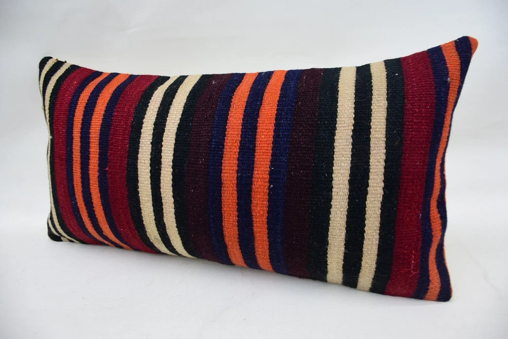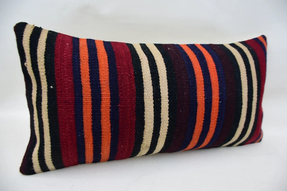 Pillow for Sofa, Kilim Pillow Cover, 12"x24" Orange Pillow Cover
