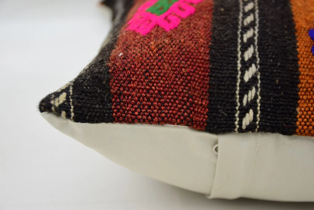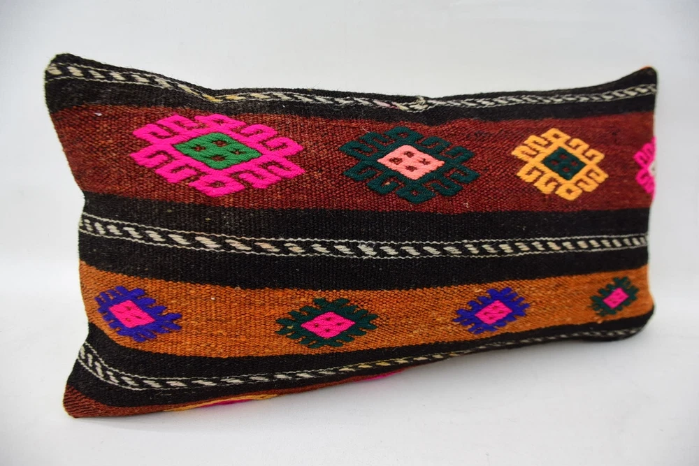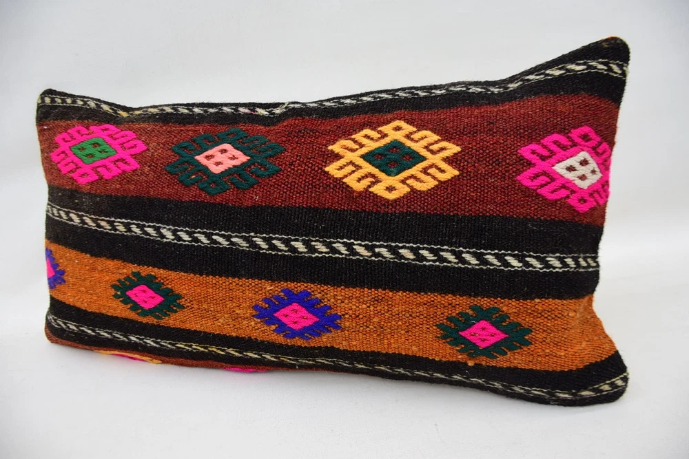 Introducing my Home Decor Kilim Pillow Cover, a stunning piece of farmhouse decor handcrafted from a vintage kilim rug. This unique cushion cover is a perfect addition to my home, providing a touch of warmth and elegance to any space. These decorative pillow cases are a simple yet effective way to transform my house with small, meaningful touches. Add a personalized touch to my living space with my customizable pillow covers, making them ideal for various occasions such as Bridesmaid Gifts, Wedding Gifts, Best Friend Gifts, Custom Gifts, Birthday Gifts For Him or Her, and even as a thoughtful Gift For Mom. Whether you're looking for a Personalized Pillow, Custom Body Pillow, Crochet Pattern Pillow, Pet Pillow, Bolster Pillow, or Gift For Home Pillow, we have you covered. Detailed Information About This Kilim Pillow Cover, Cushion Cover Crafted from a vintage Turkish rug. This Kilim Pillow Cover measures 12 x 24 inches (30 x 60 centimeters) , Making it a versatile piece for my couch or sofa. Should you require a pillow insert, it can be conveniently ordered separately in this listing variation. Rest assured, my kilim pillow covers are clean and ready for immediate use. Prior to designing them, all vintage rugs undergo professional washing to ensure their cleanliness and quality. The front side of the pillow cover features a vintage wool rug, while the backside is made of soft cotton fabric. For my convenience, we've incorporated a zipper on the backside, allowing you to easily remove and wash the pillow covers whenever needed. In this listing, you'll find a variety of lumbar pillow covers that are equally suitable for use as bedding pillows or outdoor accents. Experience the versatility and charm of my kilim pillow covers firsthand. We strive for customer satisfaction, and my decorative kilim pillow covers are backed by my guarantee. If, for any reason, you're not completely satisfied, we accept returns and offer refunds. Please note that shipping charges from Turkey will be deducted from my refund. If you have any questions about my kilim pillow covers, please don't hesitate to reach out. We're dedicated to providing prompt responses and are always here to assist you.