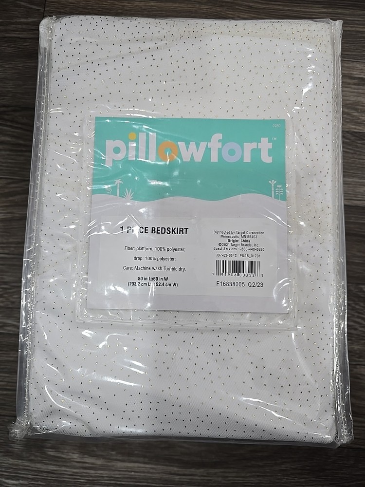 The Pillowfort Glitter Dot Tulle Kids' Bedskirt is a stylish addition to any Queen-sized bed, featuring a solid white color with a playful polka dot mesh design. Made from 100% polyester, this bed skirt adds a touch of glamour and whimsy to a bedroom, perfect for teens looking to add a pop of color to their space. With a non-woven fabric construction and the Pillowfort brand name, this bed skirt is both durable and fashionable, making it a great choice for any bedroom setting.